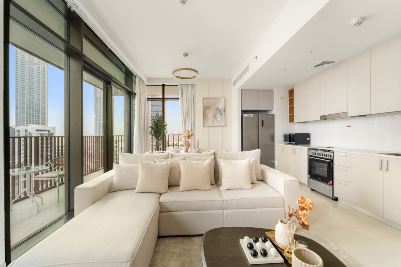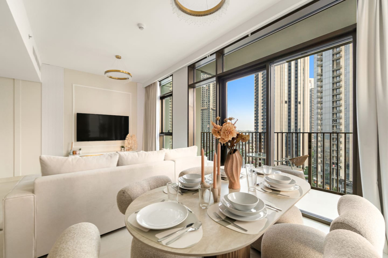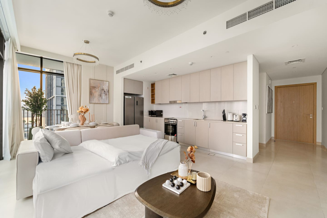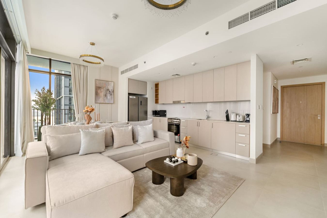 Experience vibrant living in this stylish 2BR apartment 🌇 with breathtaking Creek Harbour views. Located in Creek Crescent by Emaar, just steps from the iconic promenade 🌴, top-rated restaurants 🍽️, cafes ☕, and a luxury yacht club ⛵—all within a 3-min walk. Enjoy floor-to-ceiling windows, natural light 🌞, elegant decor 🛋️, and modern comfort—perfect for families, couples, or business trips.