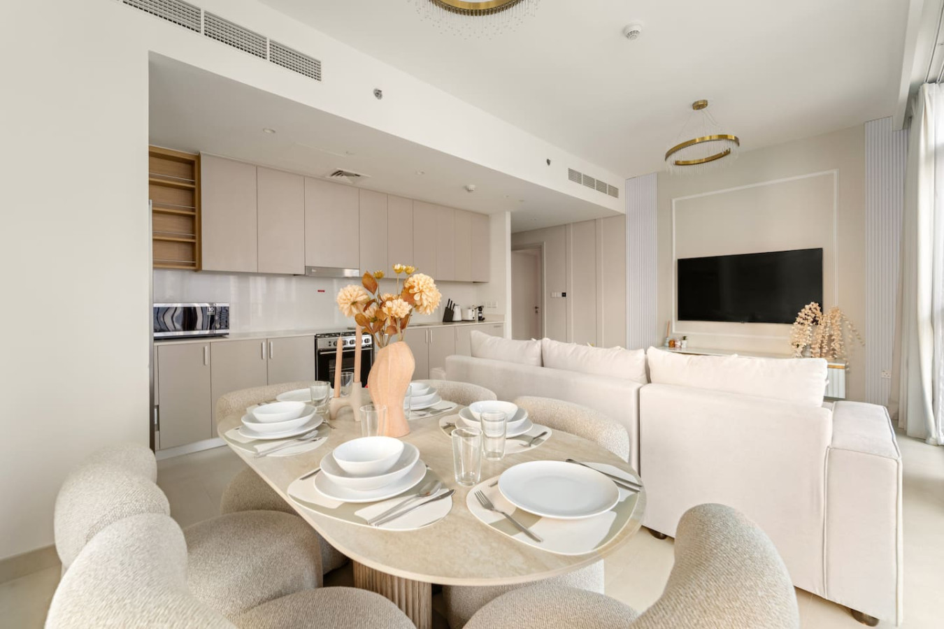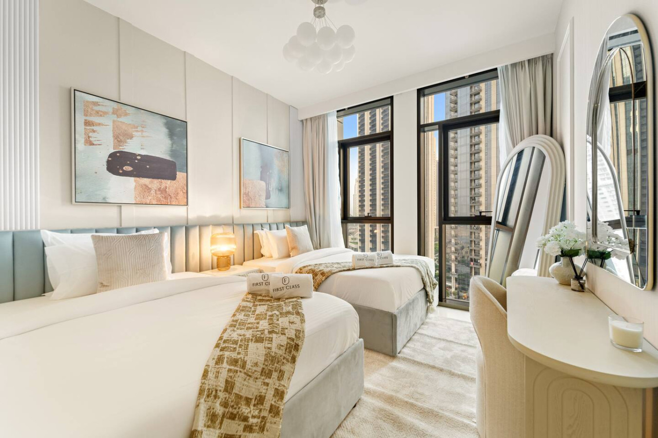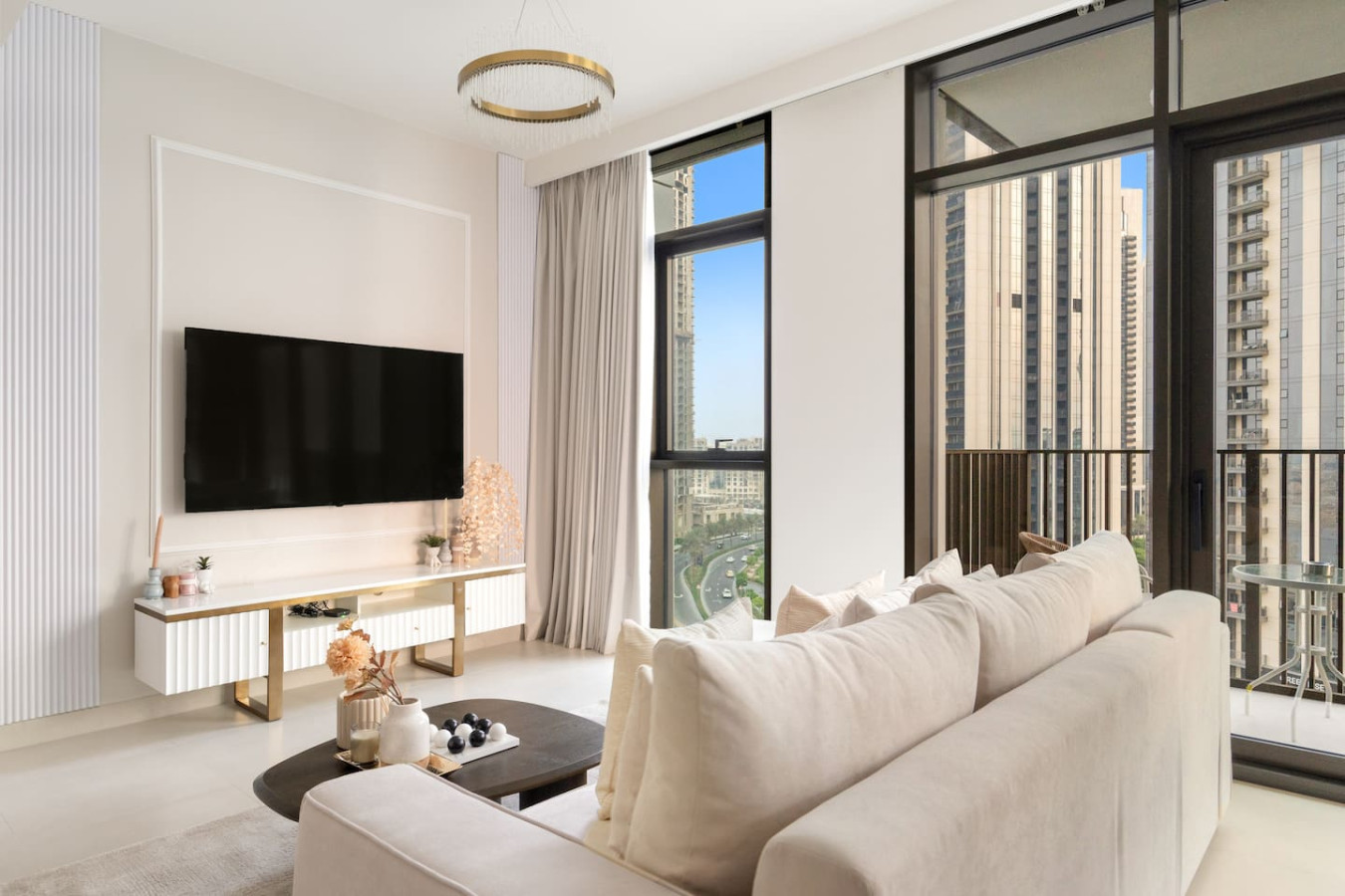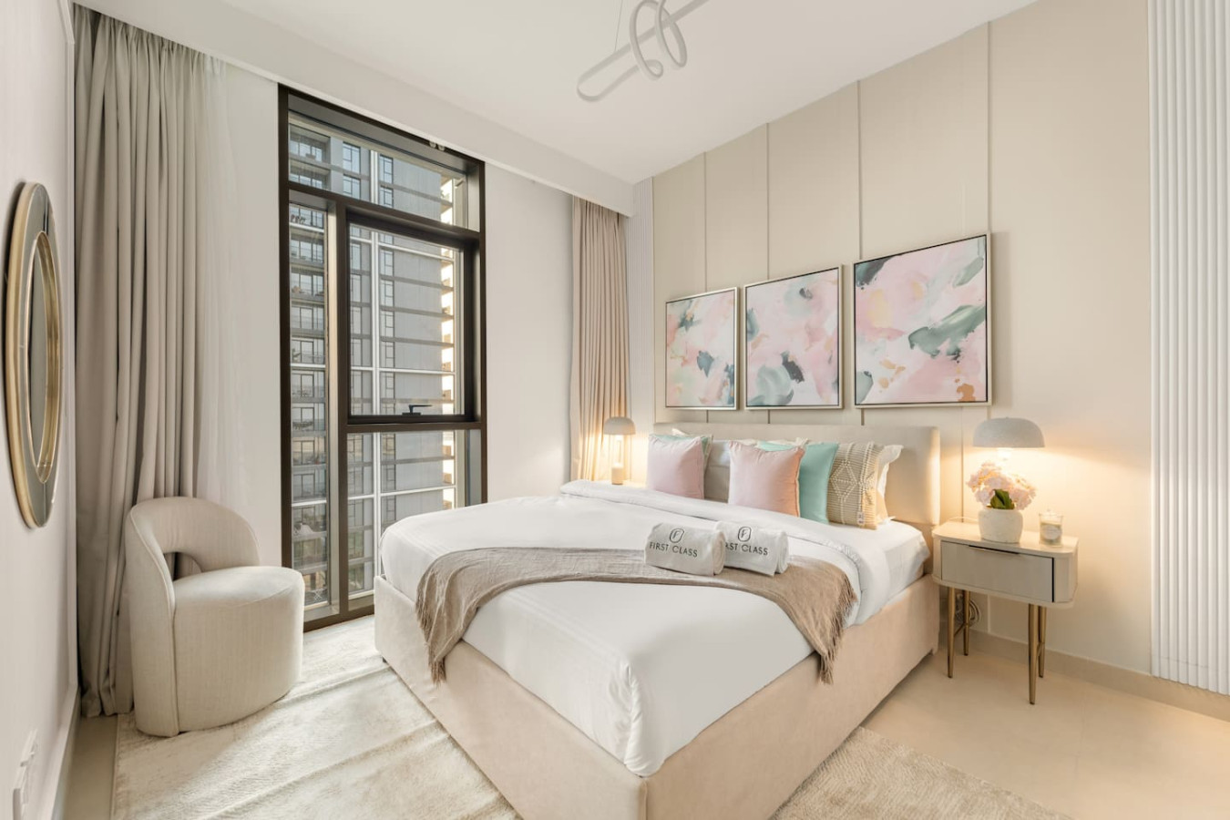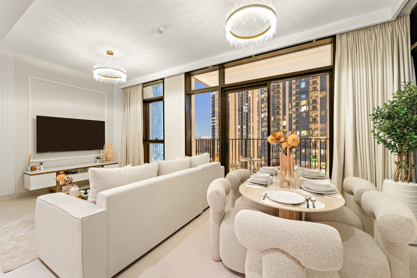 Experience vibrant living in this stylish 2BR apartment 🌇 with breathtaking Creek Harbour views. Located in Creek Crescent by Emaar, just steps from the iconic promenade 🌴, top-rated restaurants 🍽️, cafes ☕, and a luxury yacht club ⛵—all within a 3-min walk. Enjoy floor-to-ceiling windows, natural light 🌞, elegant decor 🛋️, and modern comfort—perfect for families, couples, or business trips.