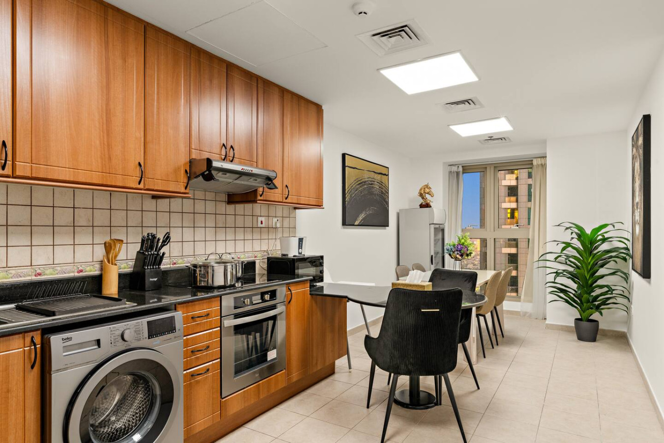 It is fully equipped with stainless-steel cooking appliances that make it suitable for preparing any meal, whether a simple breakfast, quick snack or a three-course gourmet dinner. Spacious quartz countertops and a central kitchen island provide plenty of room to work your MasterChef magic.