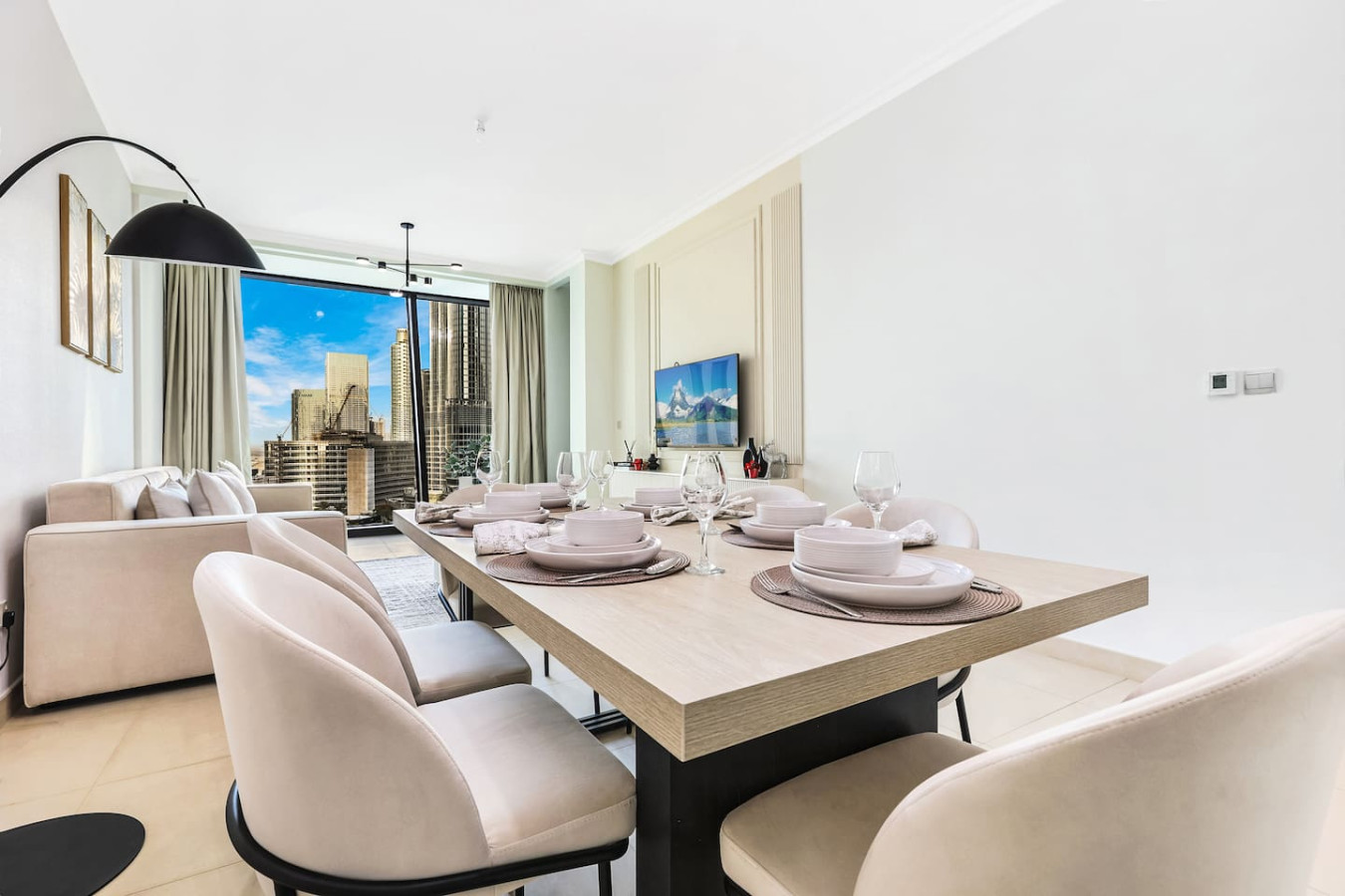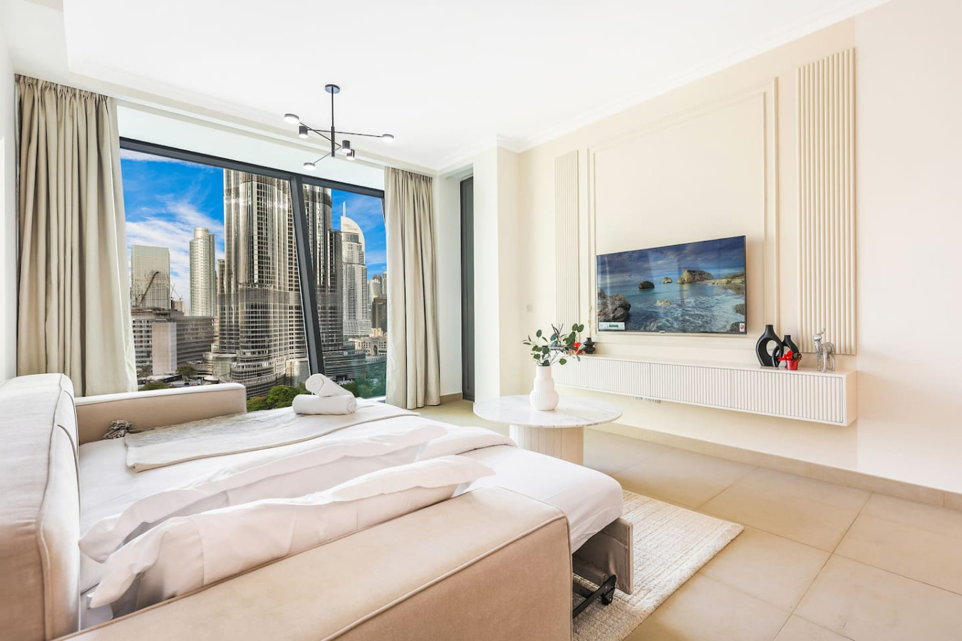 ✨Experience luxury in this stylish 2BR apartment with breathtaking Burj Khalifa views 🌆 Just a 5-min walk to Dubai Mall via link bridge & close to Metro 🚶♂️🚇 Enjoy vibrant city life, modern amenities, and serene comfort 🛋️🌟 Perfect for relaxing after a day of adventure 🌴🏙️ Unwind with skyline views and create unforgettable memories 🌅📸 Ideal blend of location, elegance & convenience! 🏡💫