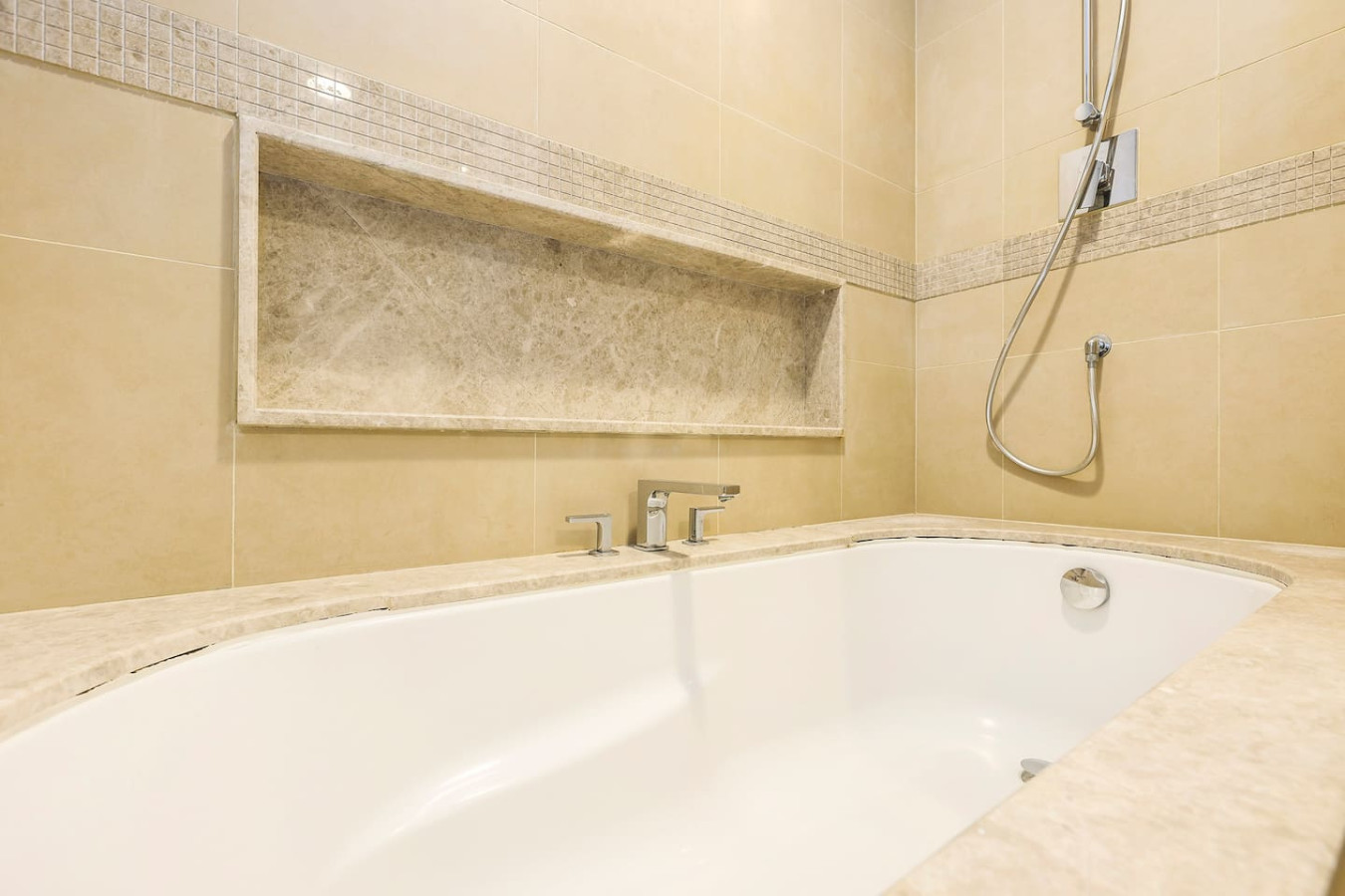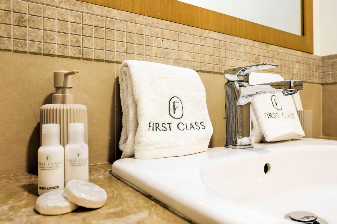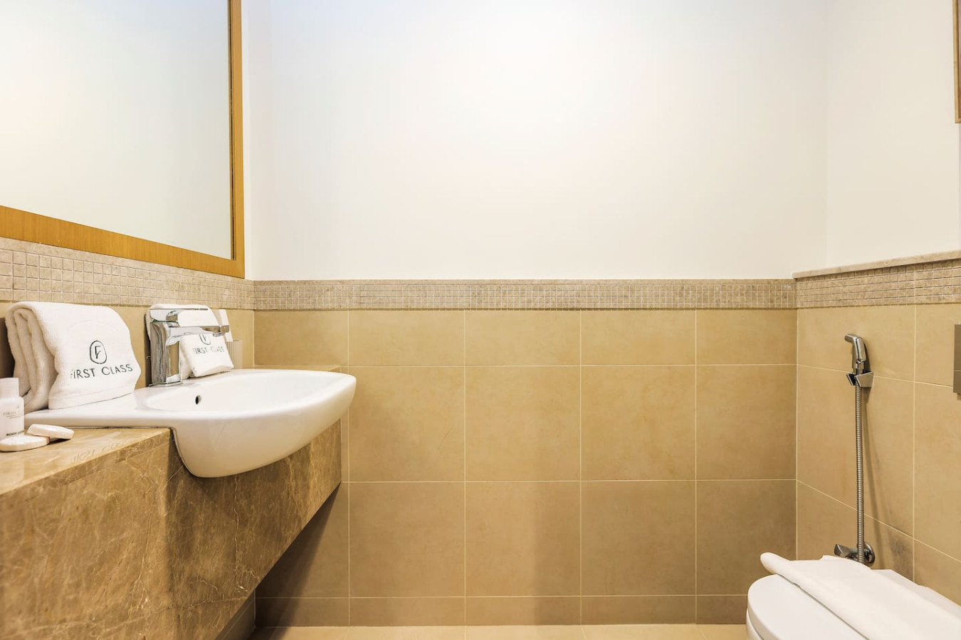 The bathroom is stocked with fresh towels and essential toiletries, so you don’t have to worry about bringing your own.