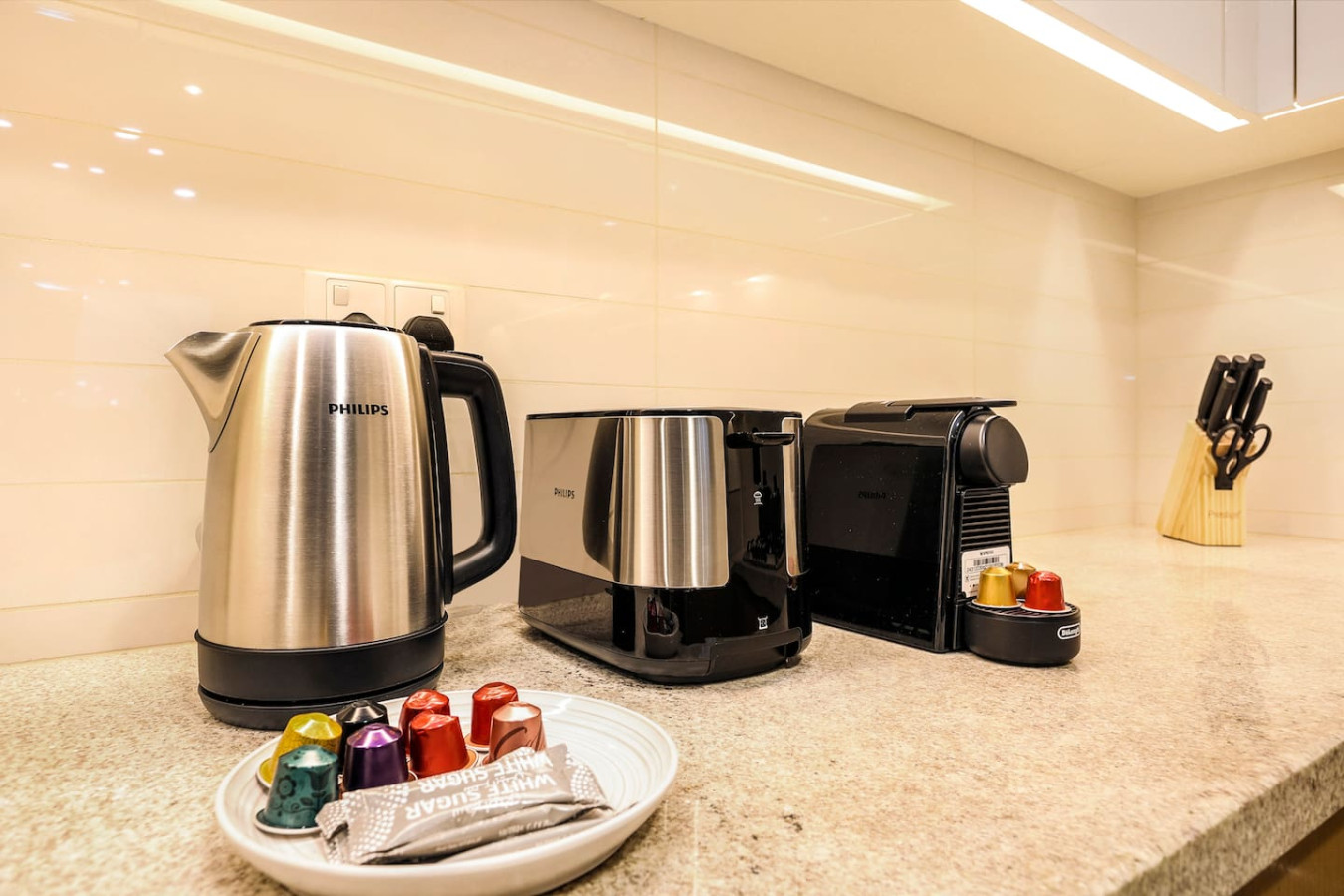 It is fully equipped with stainless-steel cooking appliances that make it suitable for preparing any meal, whether a simple breakfast, quick snack or a three-course gourmet dinner.