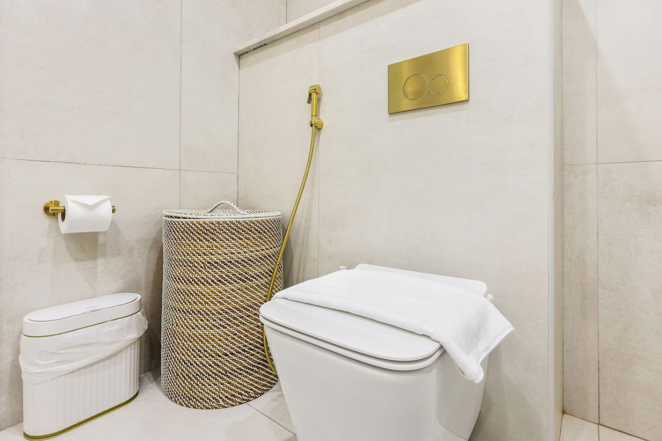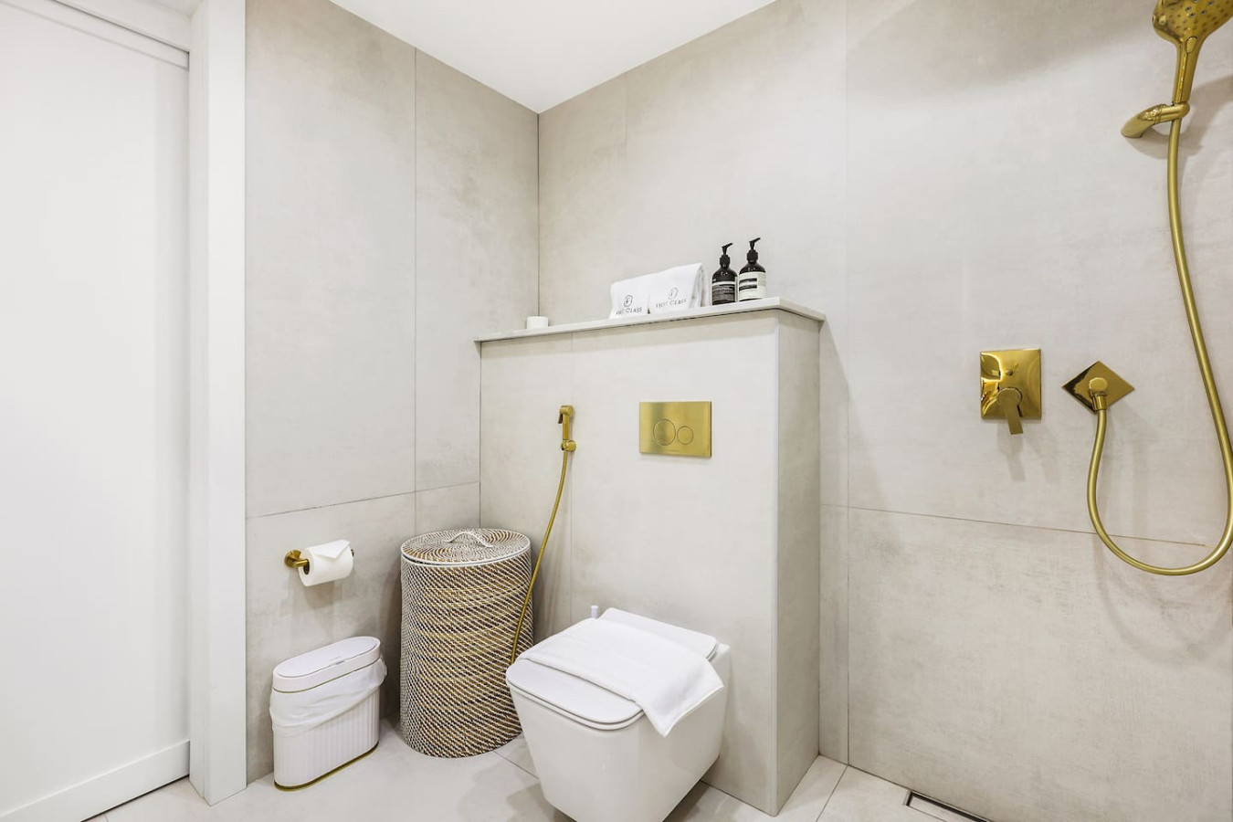 The bathroom is stocked with fresh towels and essential toiletries, so you don’t have to worry about bringing your own.
