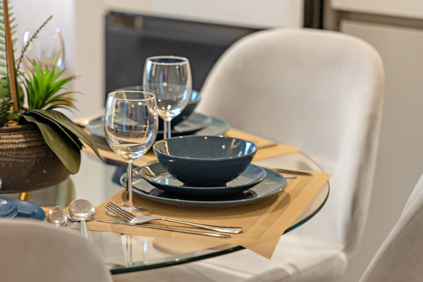 Have a few drinks in the living room while the food is getting ready. Once it’s done, serve it at the inviting dining table and enjoy a tasty meal with your loved ones.