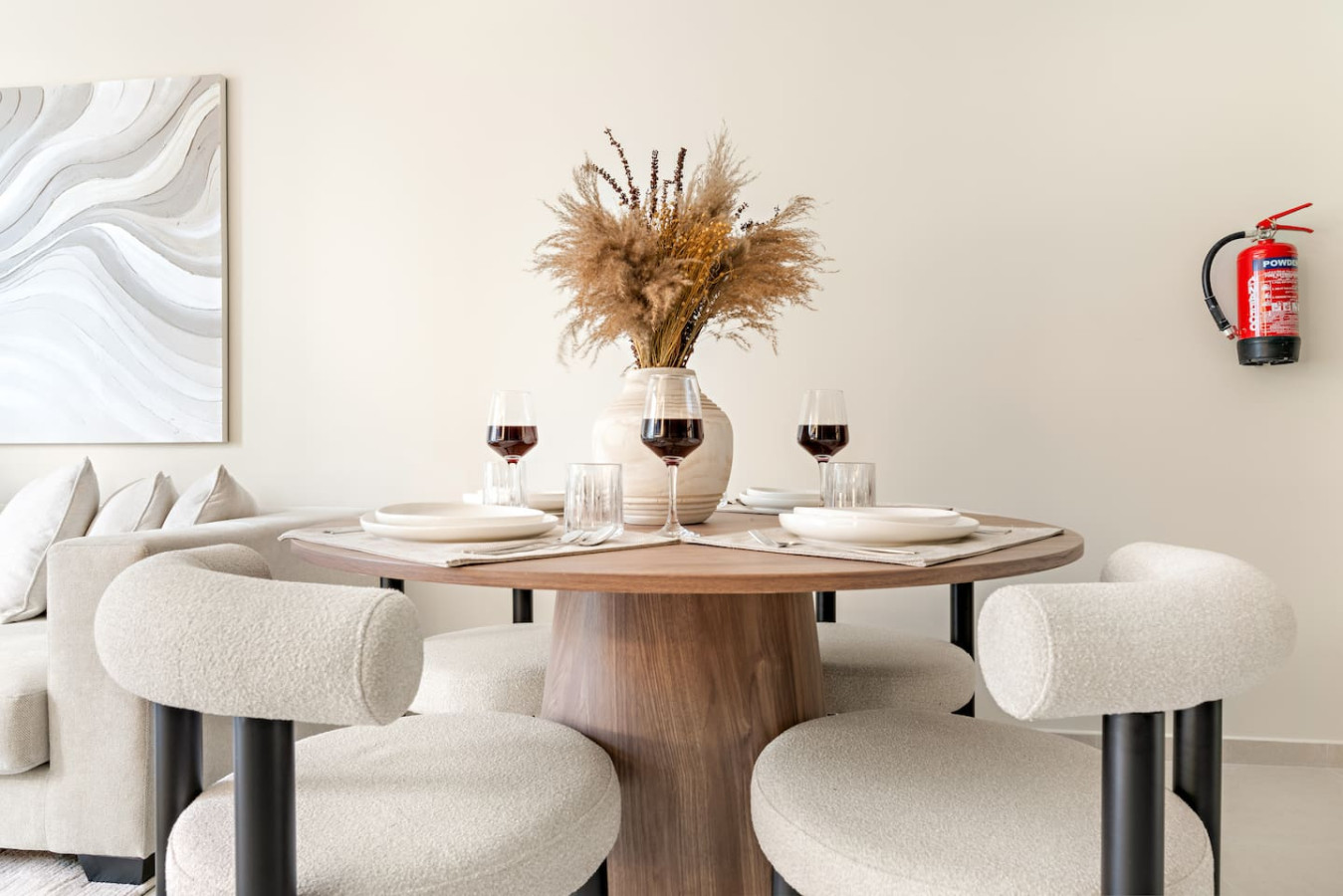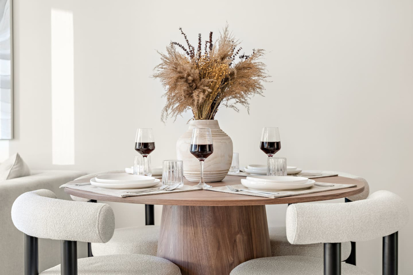 Have a few drinks in the living room while the food is getting ready. Once it’s done, serve it at the inviting dining table and enjoy a tasty meal with your loved ones.