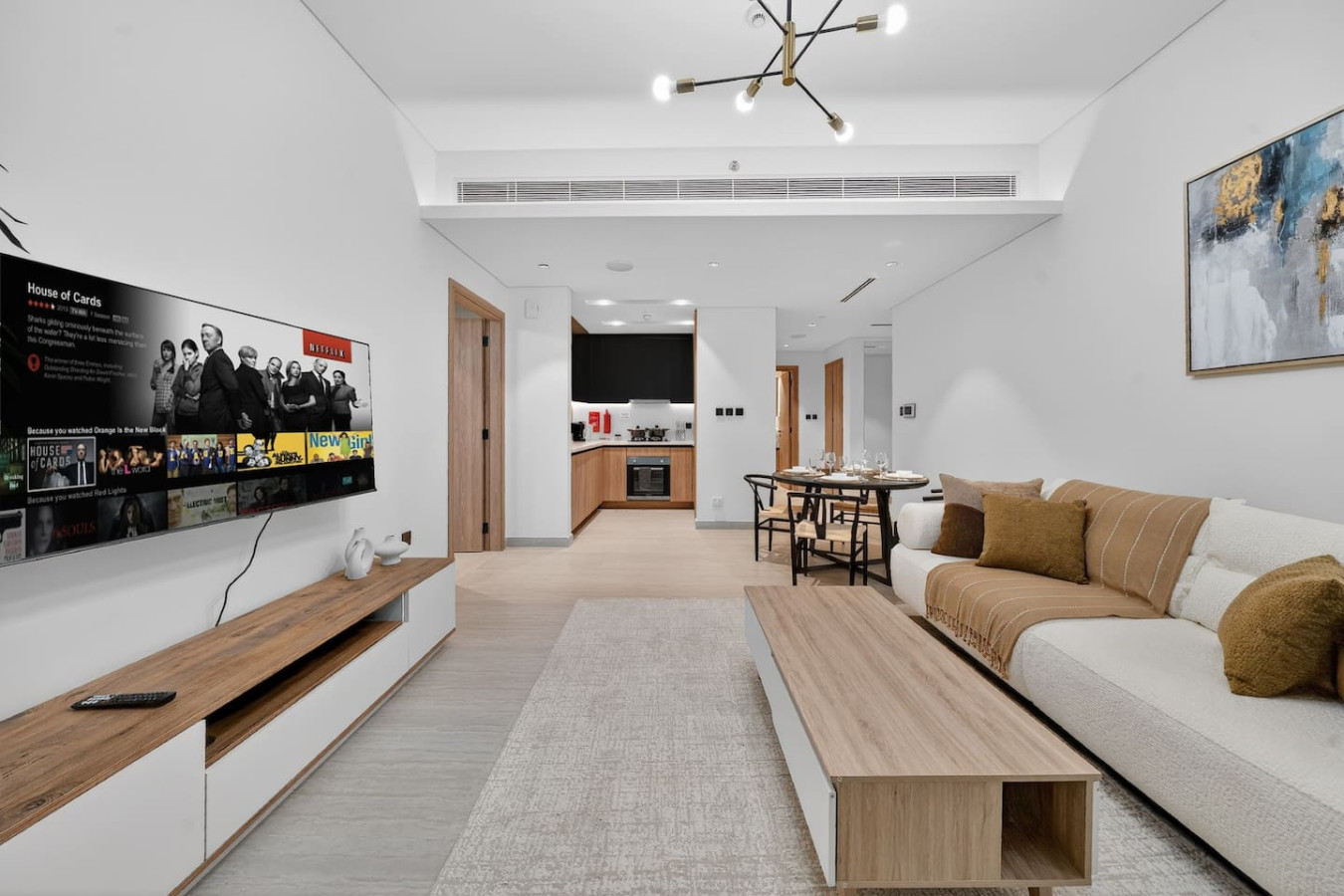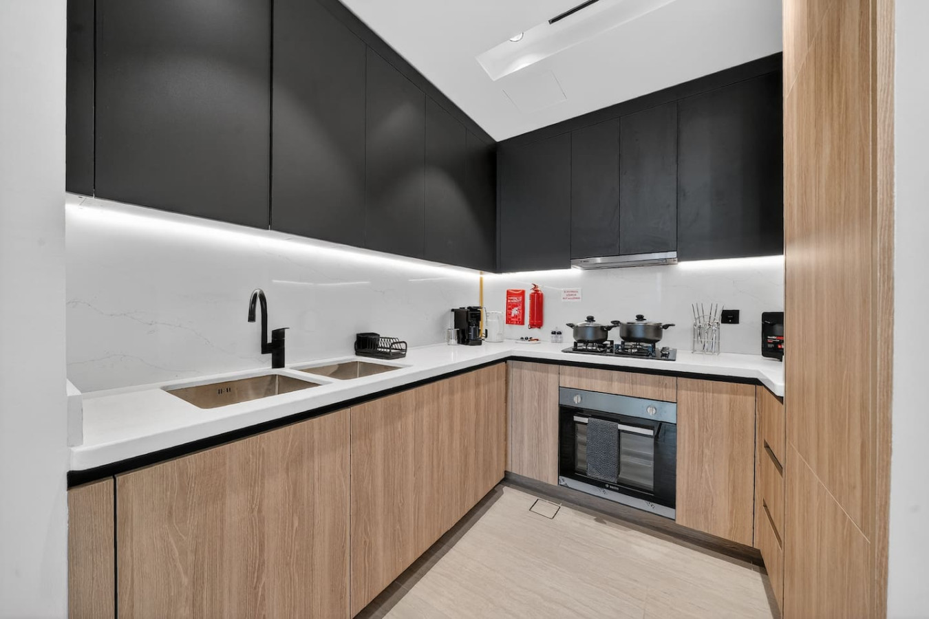 It is fully equipped with stainless-steel cooking appliances that make it suitable for preparing any meal, whether a simple breakfast, quick snack or a three-course gourmet dinner. Spacious quartz countertops and a central kitchen island provide plenty of room to work your MasterChef magic.