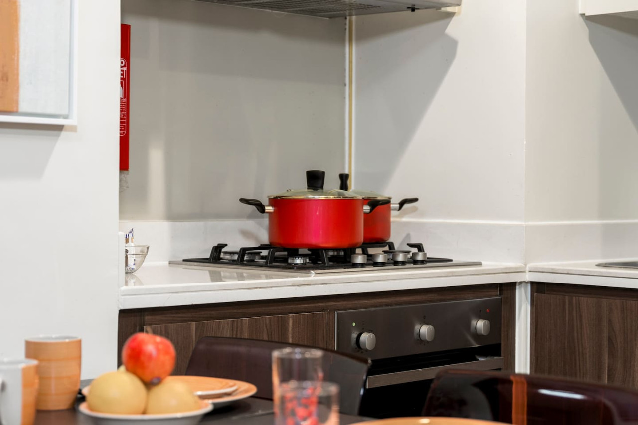 It is fully equipped with stainless-steel cooking appliances that make it suitable for preparing any meal, whether a simple breakfast, quick snack or a three-course gourmet dinner. Spacious quartz countertops and a central kitchen island provide plenty of room to work your MasterChef magic.