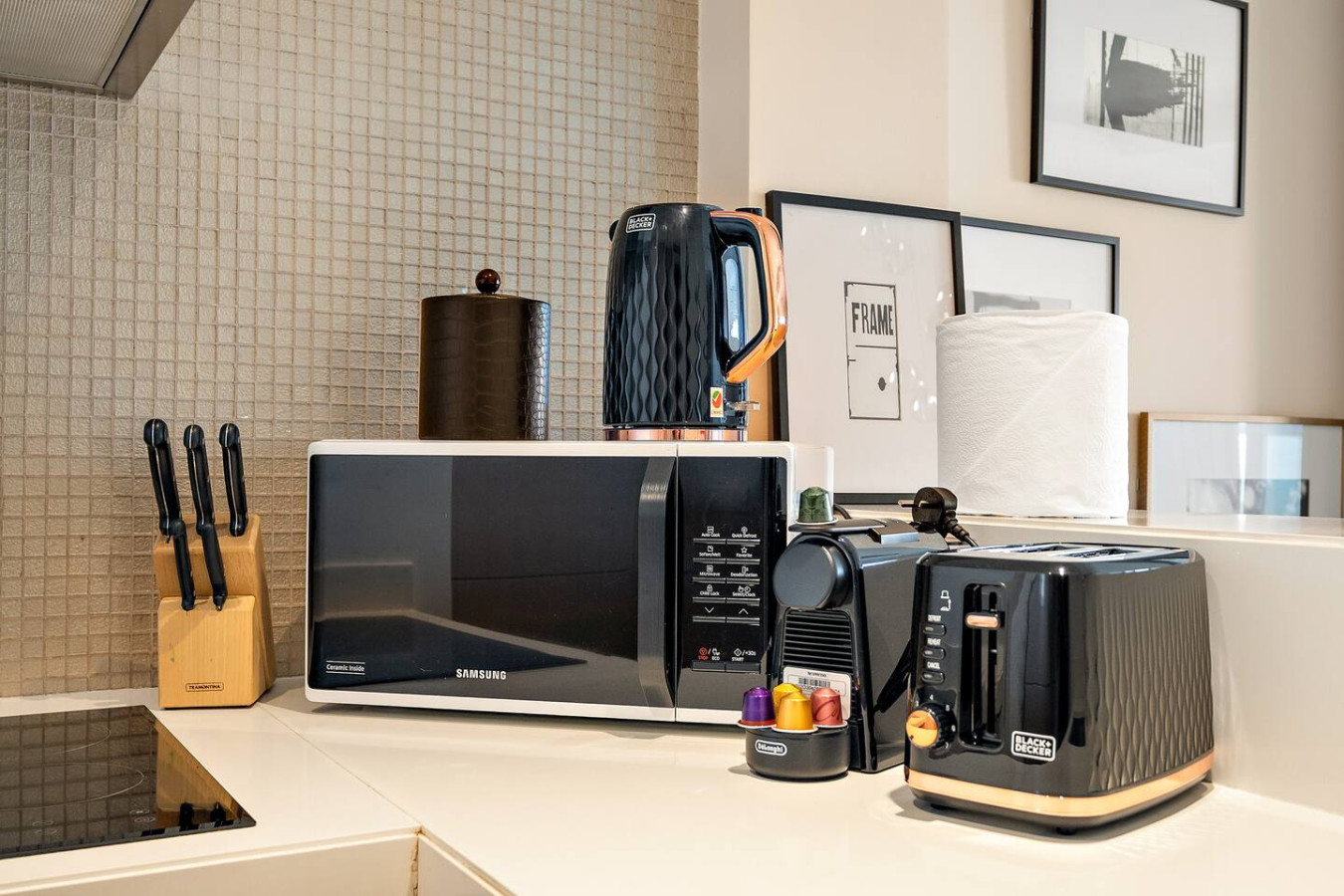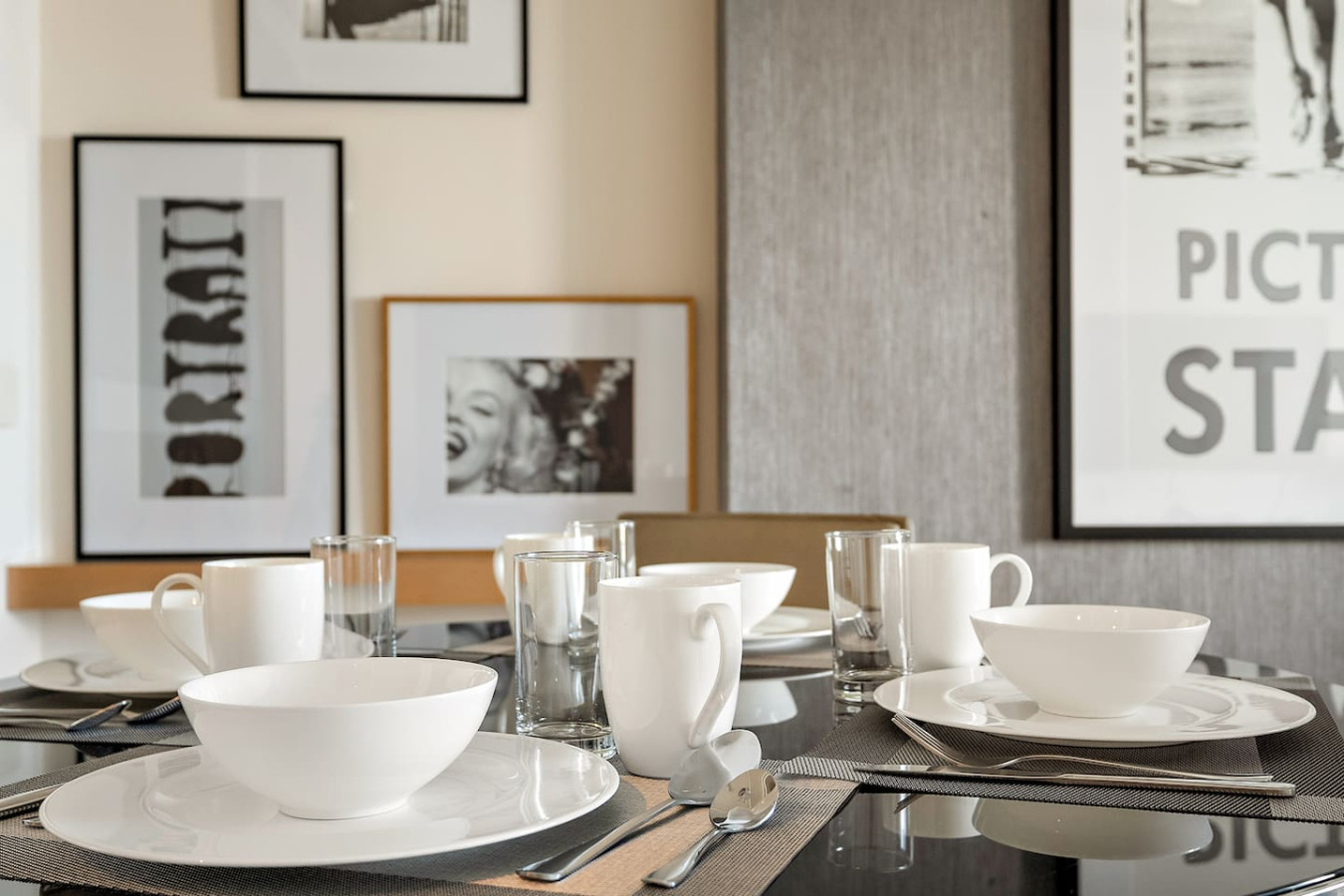 It is fully equipped with stainless-steel cooking appliances that make it suitable for preparing any meal, whether a simple breakfast, quick snack or a three-course gourmet dinner. Spacious quartz countertops and a central kitchen island provide plenty of room to work your MasterChef magic.