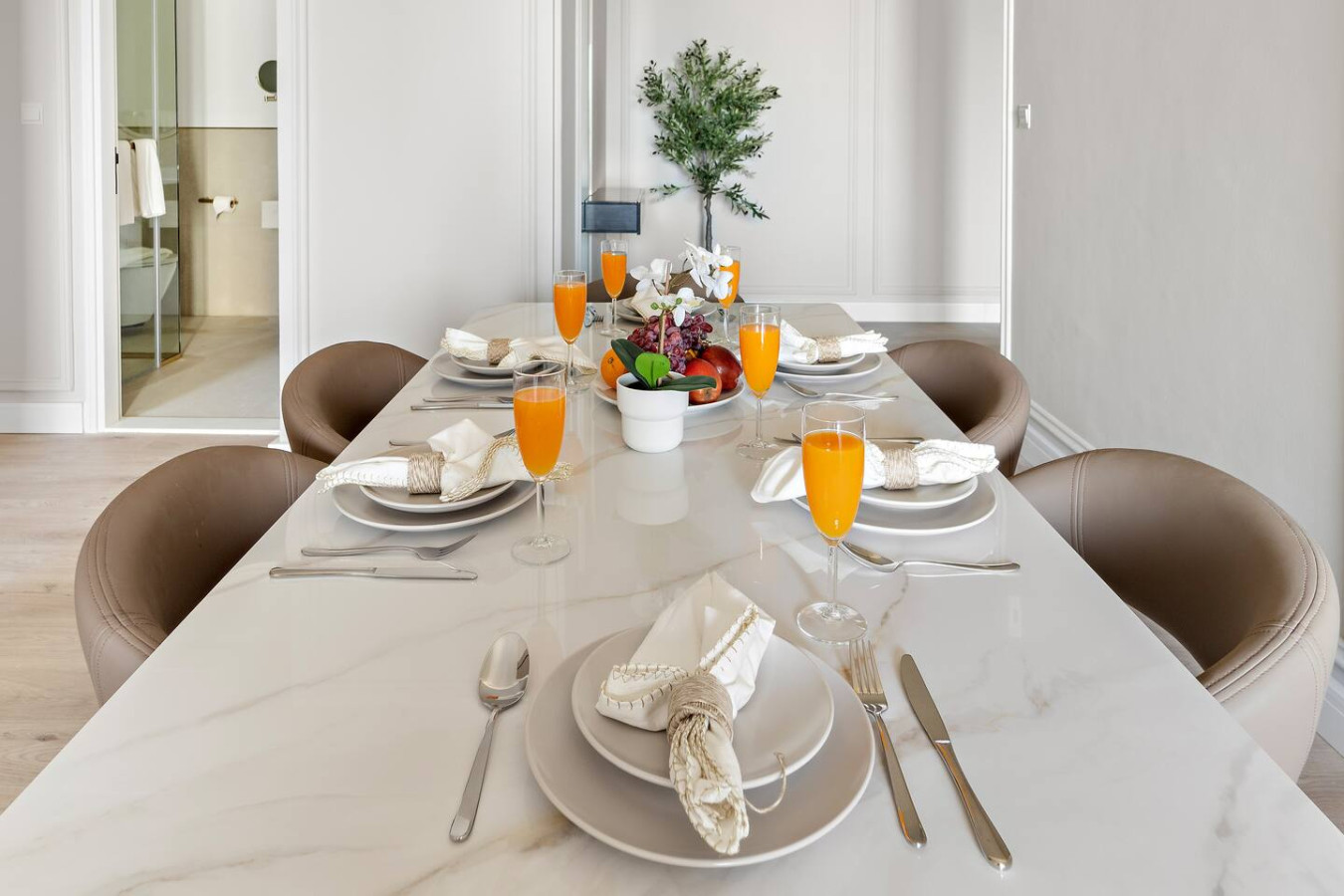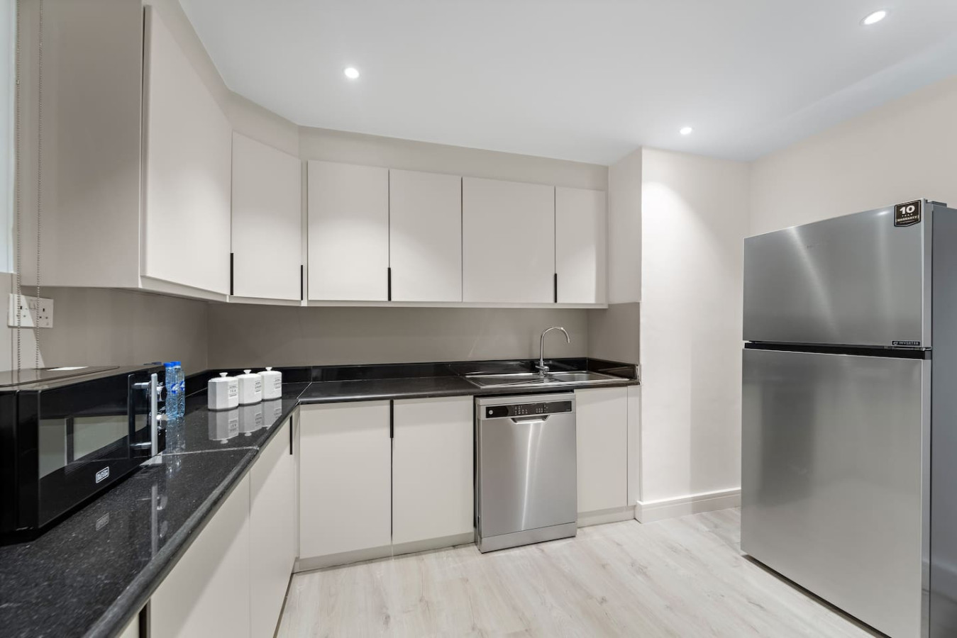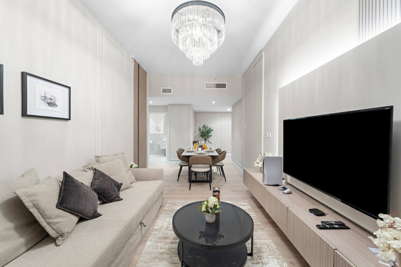 It is fully equipped with stainless-steel cooking appliances that make it suitable for preparing any meal, whether a simple breakfast, quick snack or a three-course gourmet dinner. Spacious quartz countertops and a central kitchen island provide plenty of room to work your MasterChef magic.