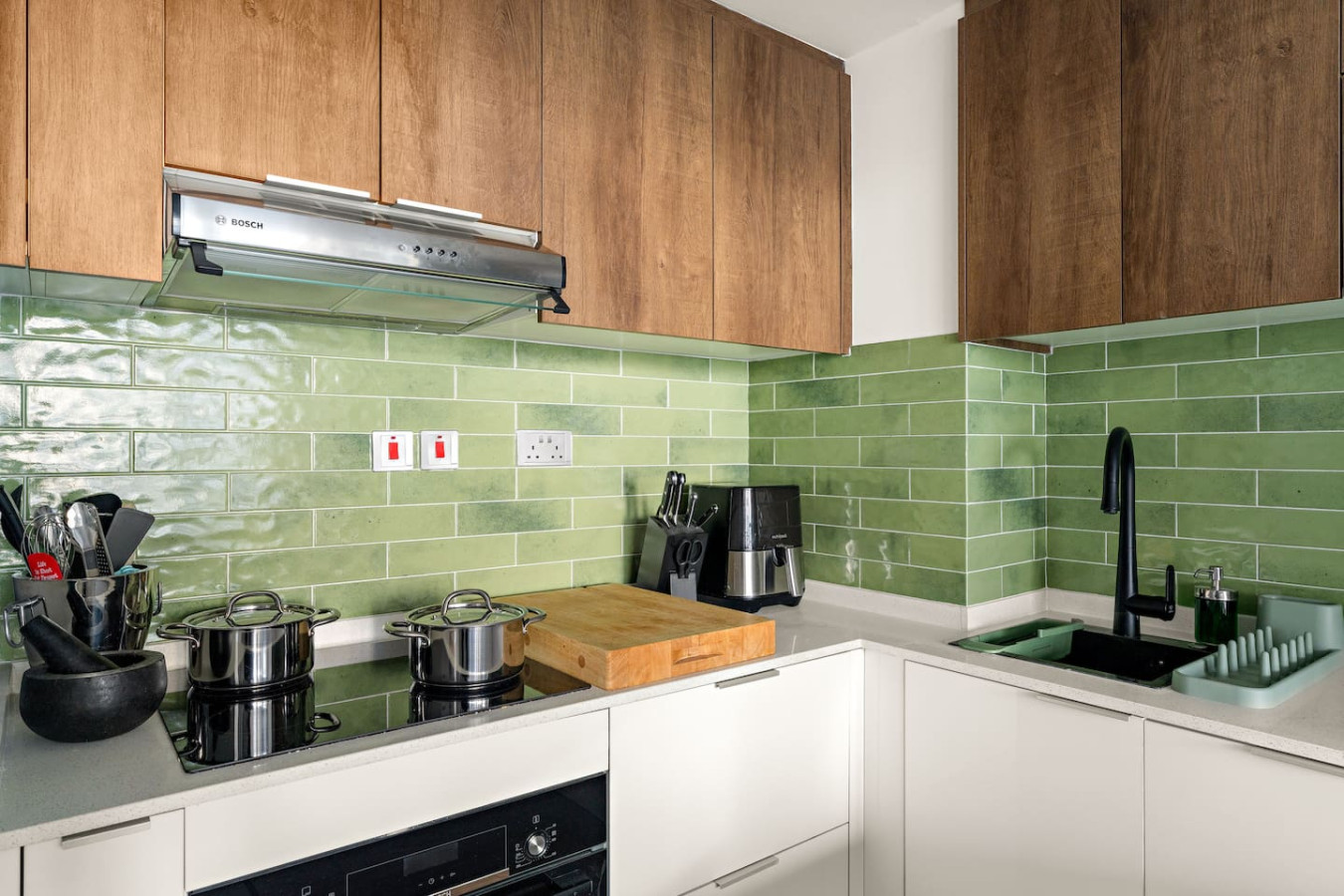 It is fully equipped with stainless-steel cooking appliances that make it suitable for preparing any meal, whether a simple breakfast, quick snack or a three-course gourmet dinner.