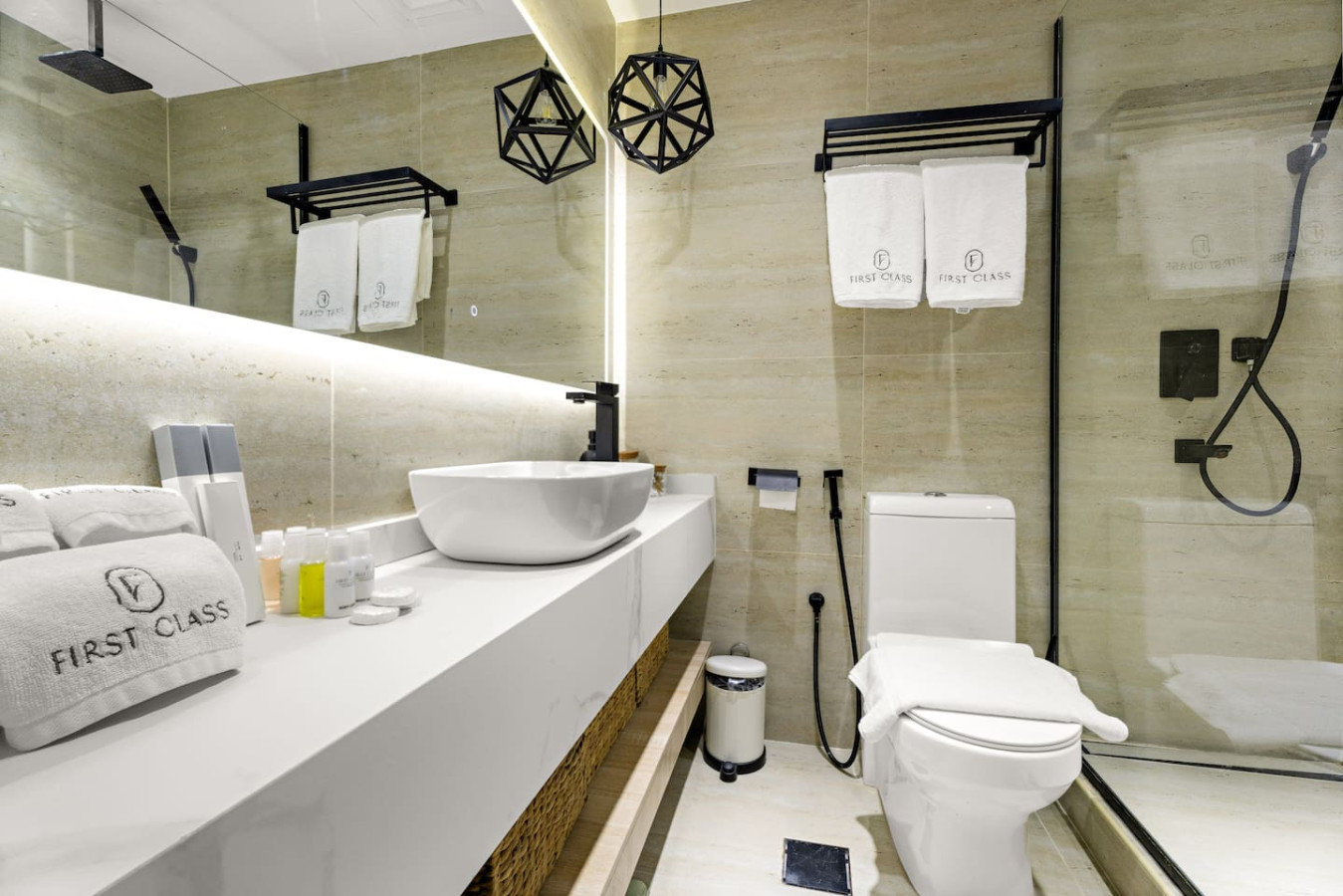 The bathroom is stocked with fresh towels and essential toiletries, so you don’t have to worry about bringing your own.