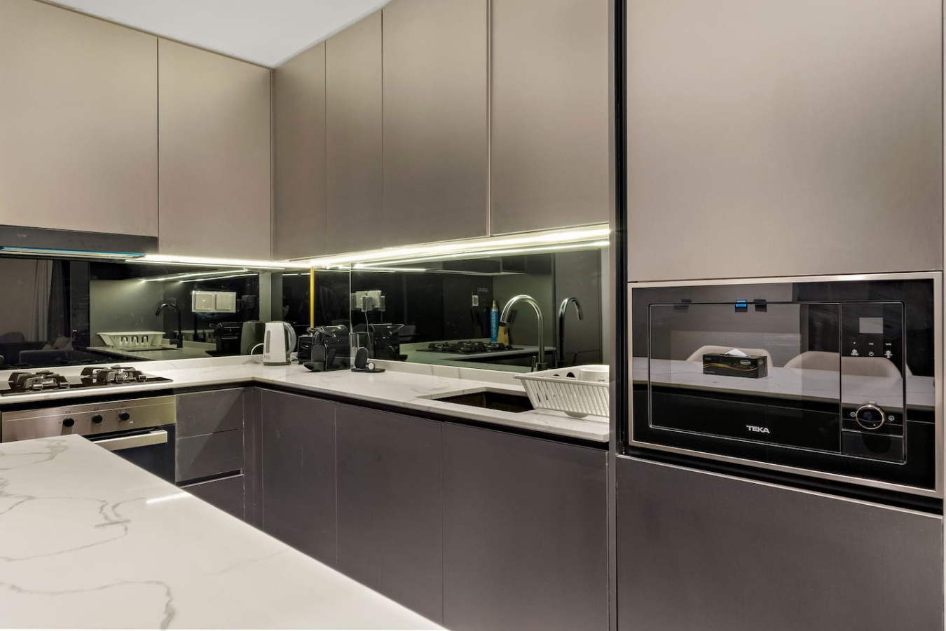 It is fully equipped with stainless-steel cooking appliances that make it suitable for preparing any meal, whether a simple breakfast, quick snack or a three-course gourmet dinner.
