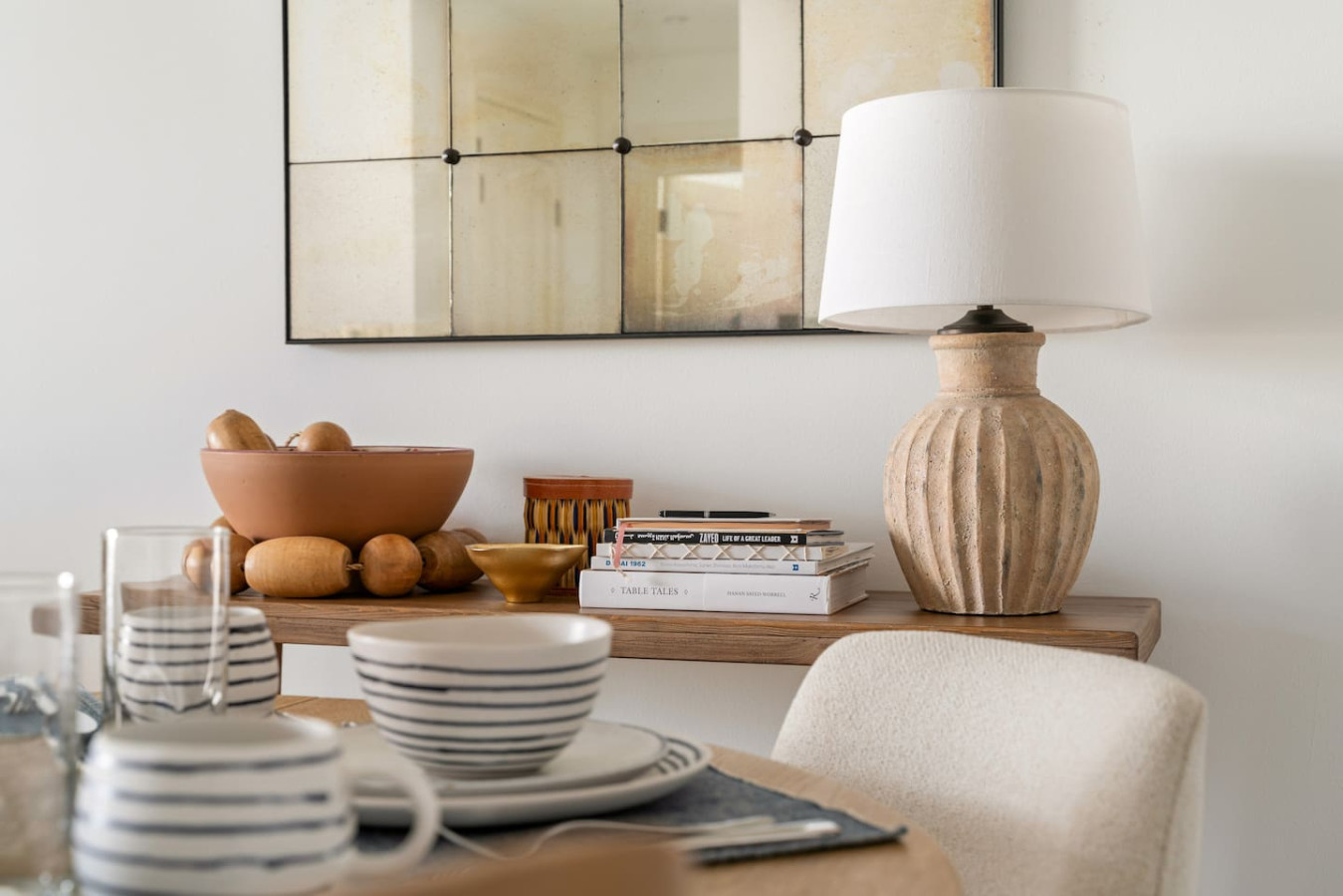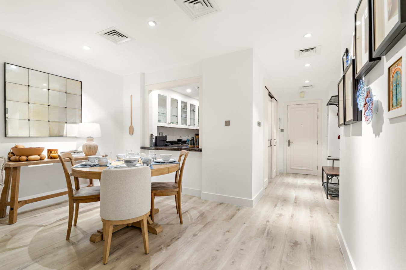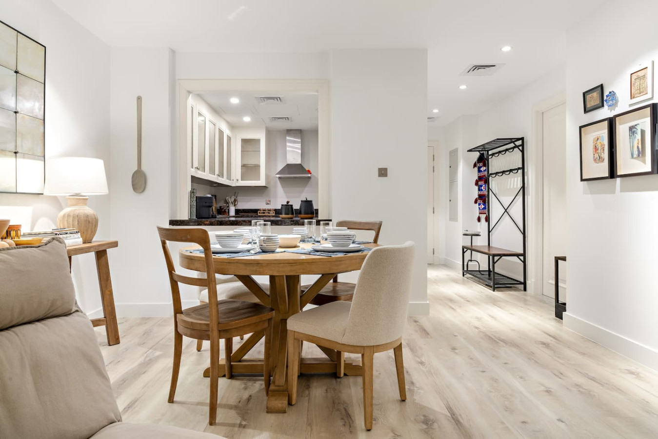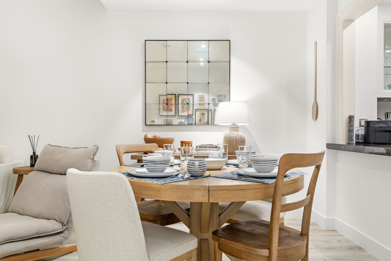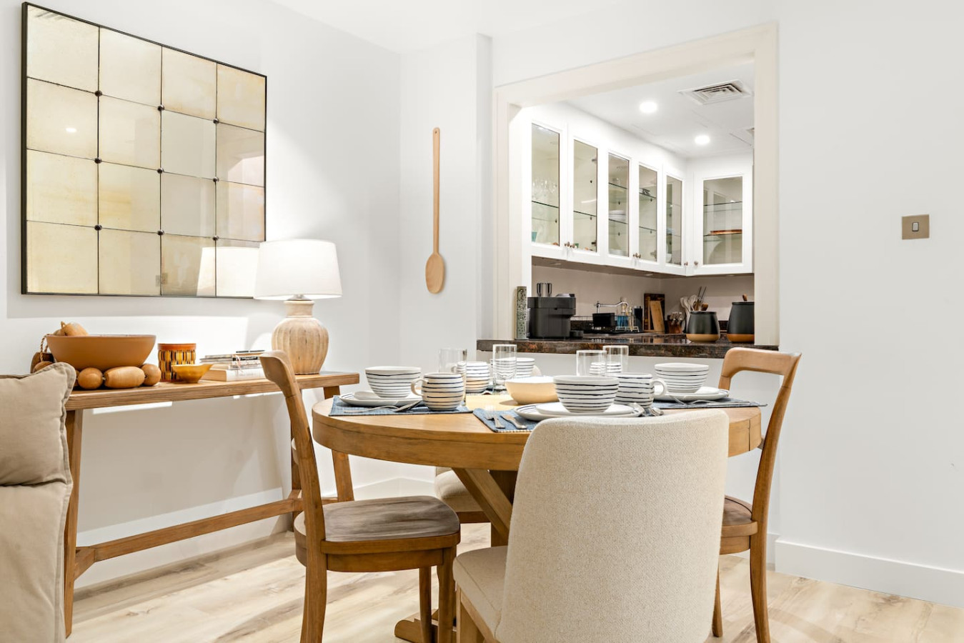 Have a few drinks in the living room while the food is getting ready. Once it’s done, serve it at the inviting dining table and enjoy a tasty meal with your loved ones.