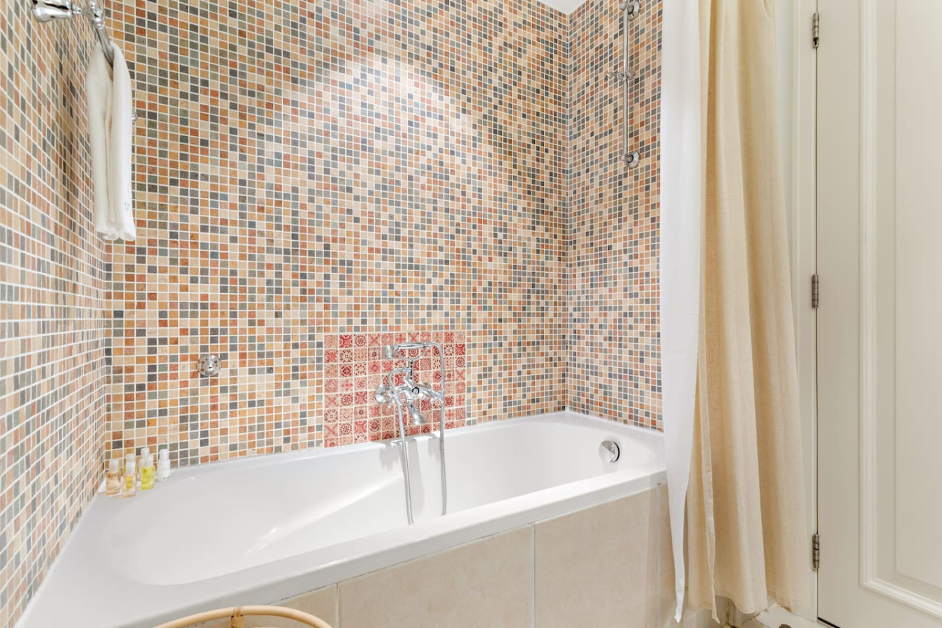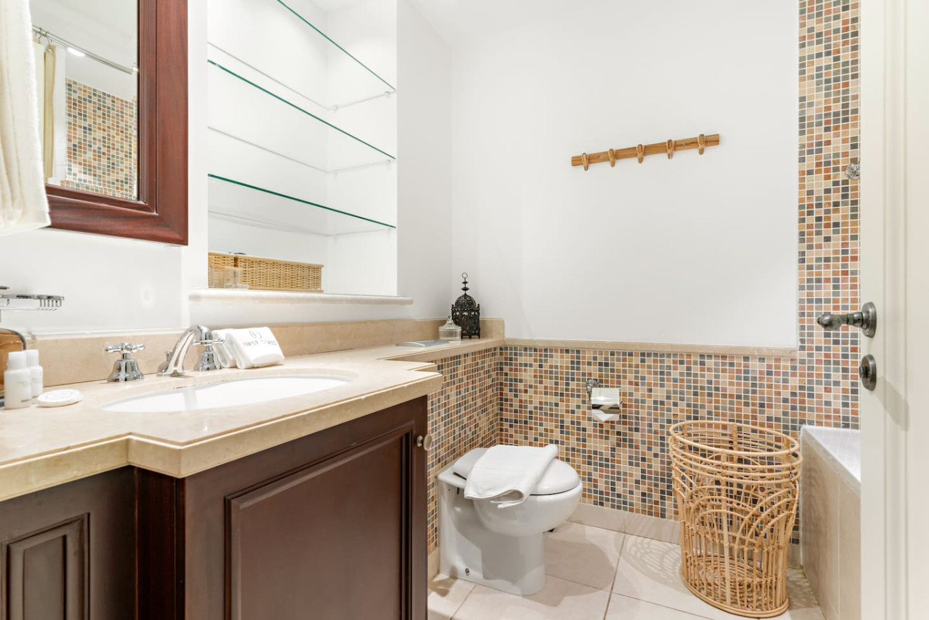 The bathroom is stocked with fresh towels and essential toiletries, so you don’t have to worry about bringing your own.