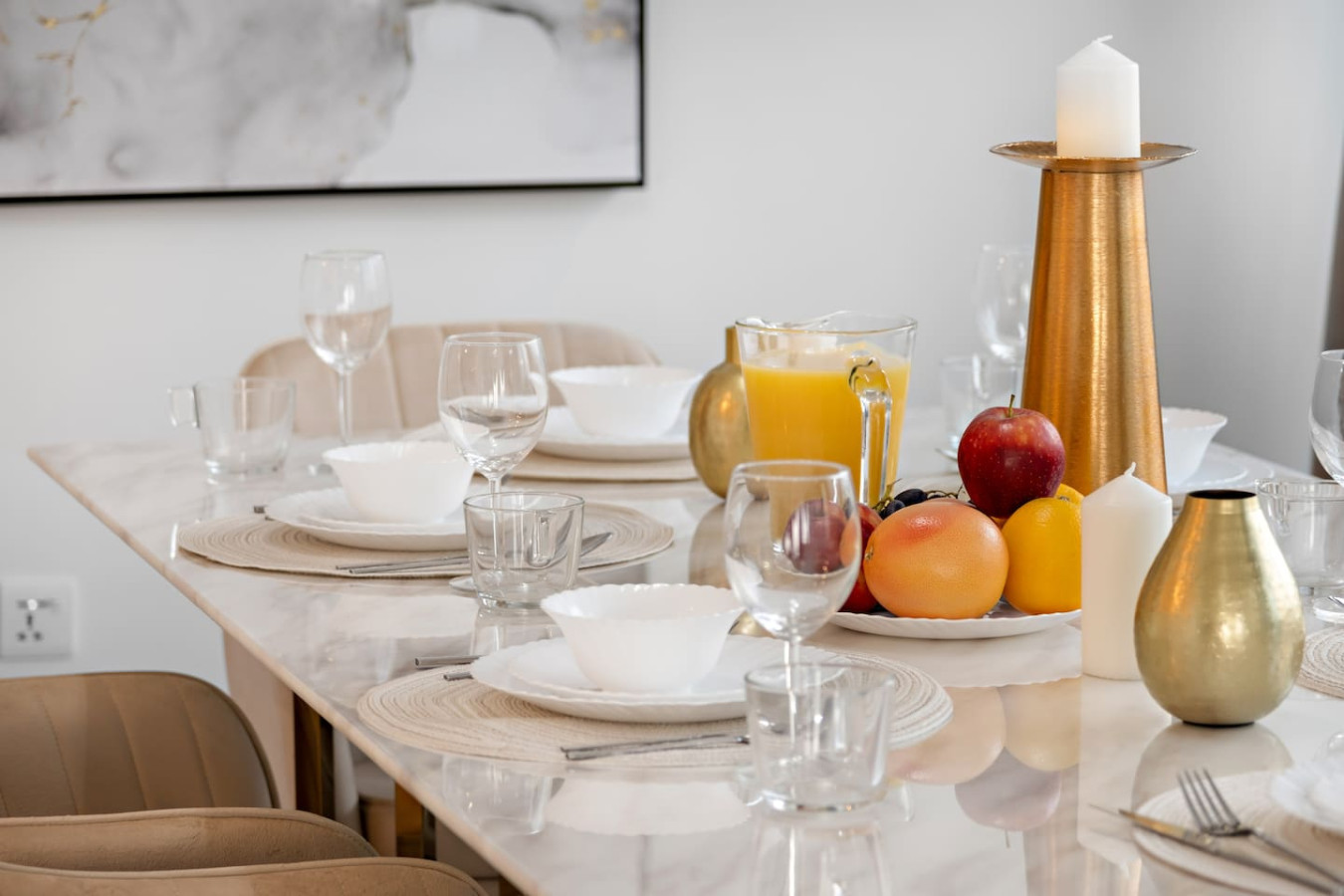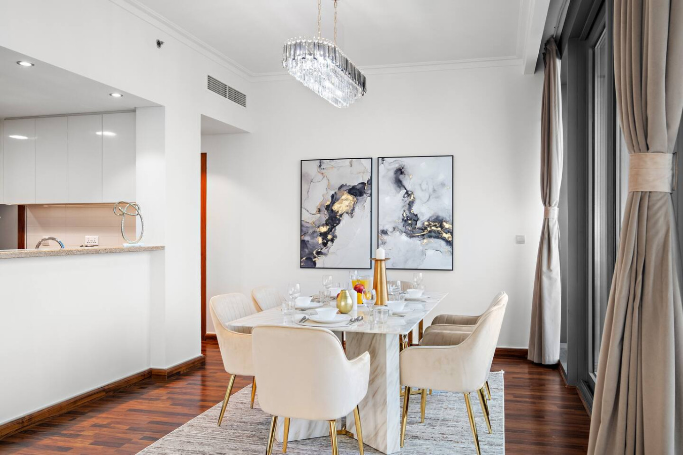Have a few drinks in the living room while the food is getting ready. Once it’s done, serve it at the inviting dining table and enjoy a tasty meal with your loved ones.