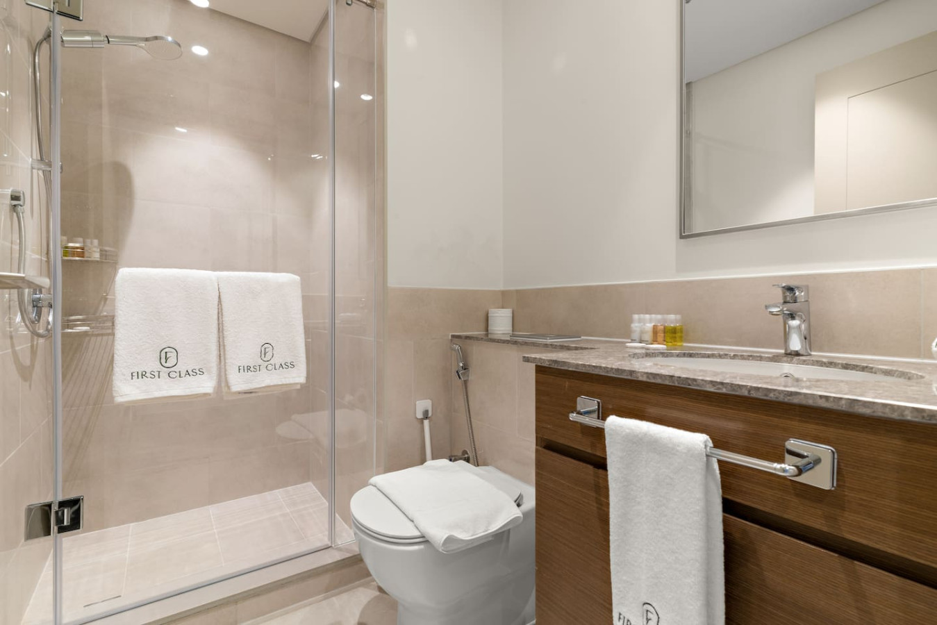 The bathroom is stocked with fresh towels and essential toiletries, so you don’t have to worry about bringing your own.