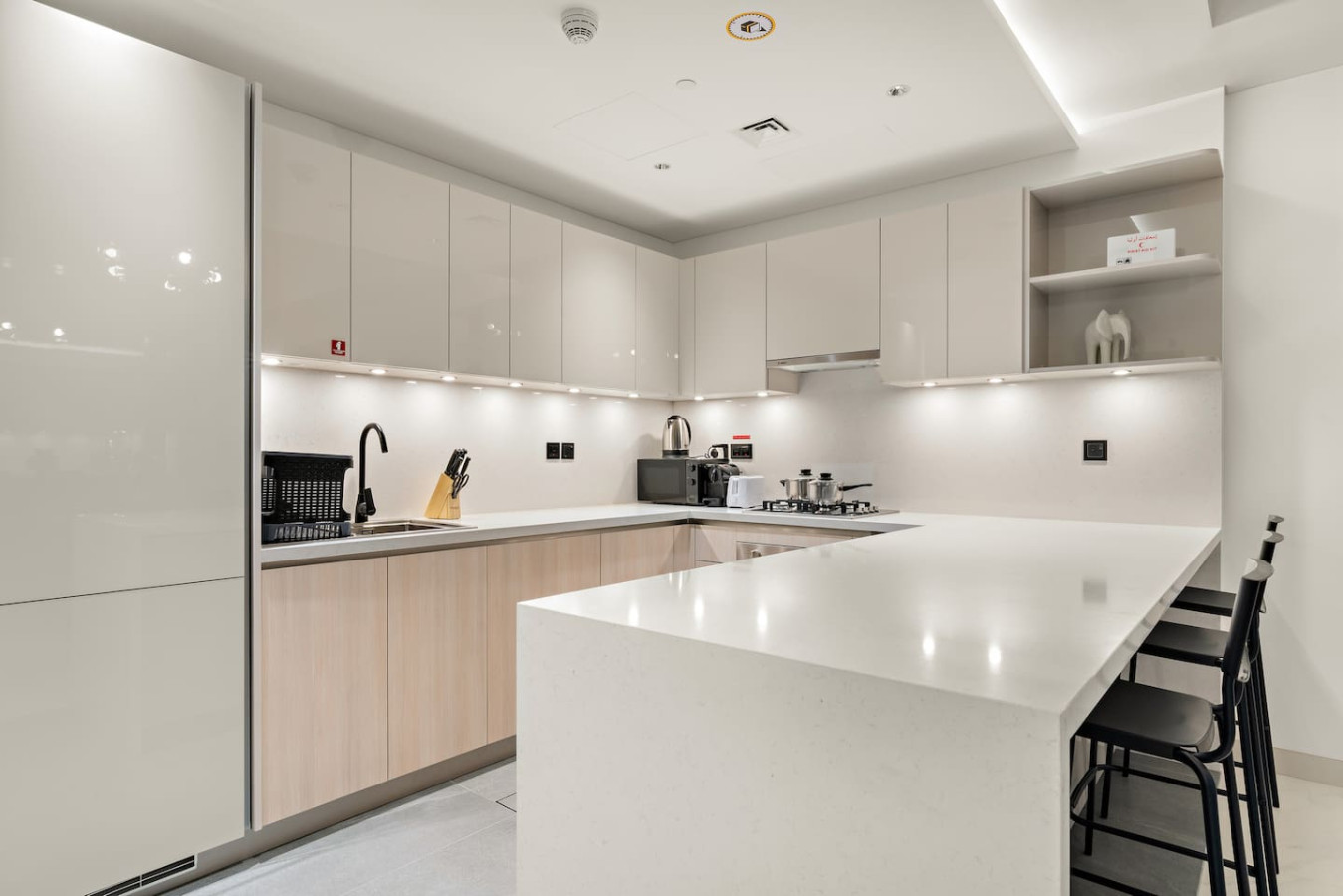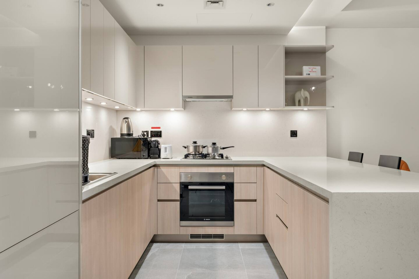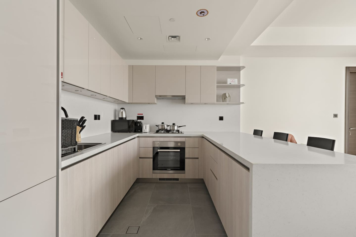 It is fully equipped with stainless-steel cooking appliances that make it suitable for preparing any meal, whether a simple breakfast, quick snack or a three-course gourmet dinner. Spacious quartz countertops and a central kitchen island provide plenty of room to work your MasterChef magic.