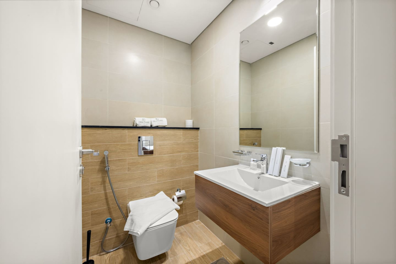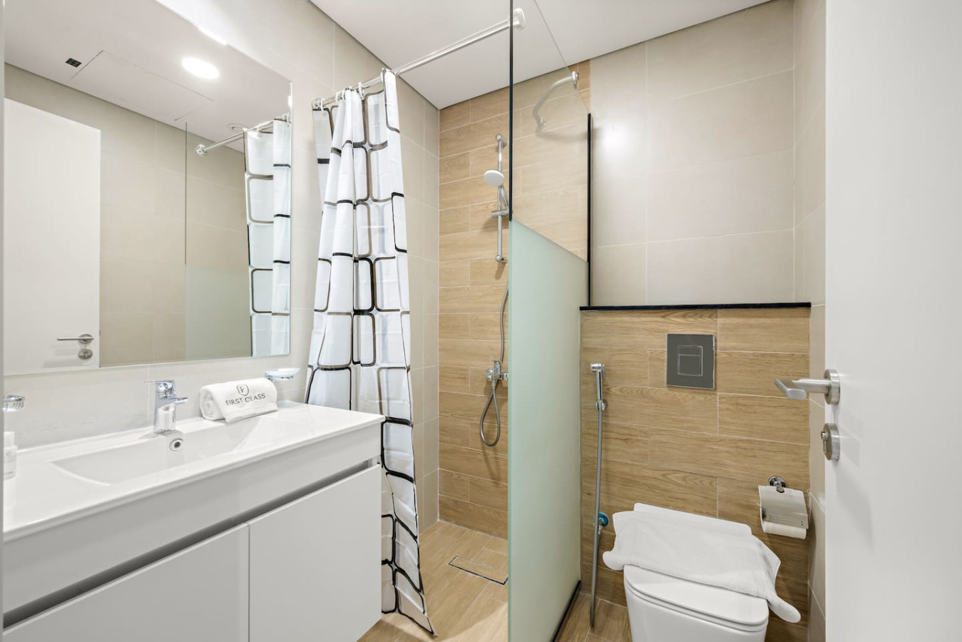 The bathroom is stocked with fresh towels and essential toiletries, so you don’t have to worry about bringing your own.