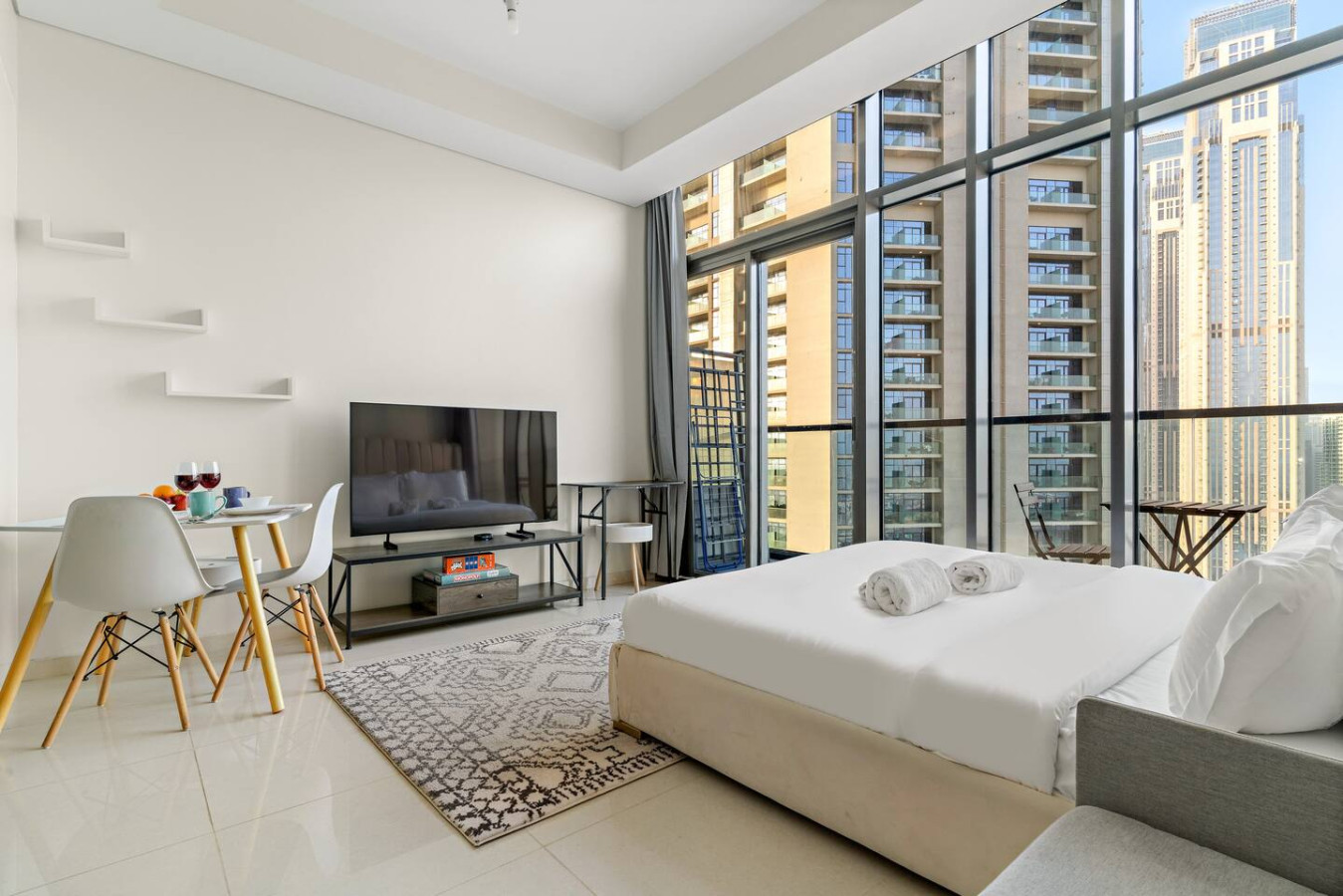 Step into a bright, modern space designed for comfort and ease. Whether you’re here to explore, unwind, or work remotely, this cozy apartment offers the perfect atmosphere. Soak in the skyline, relax in style, and enjoy your own private escape in the heart of the city.