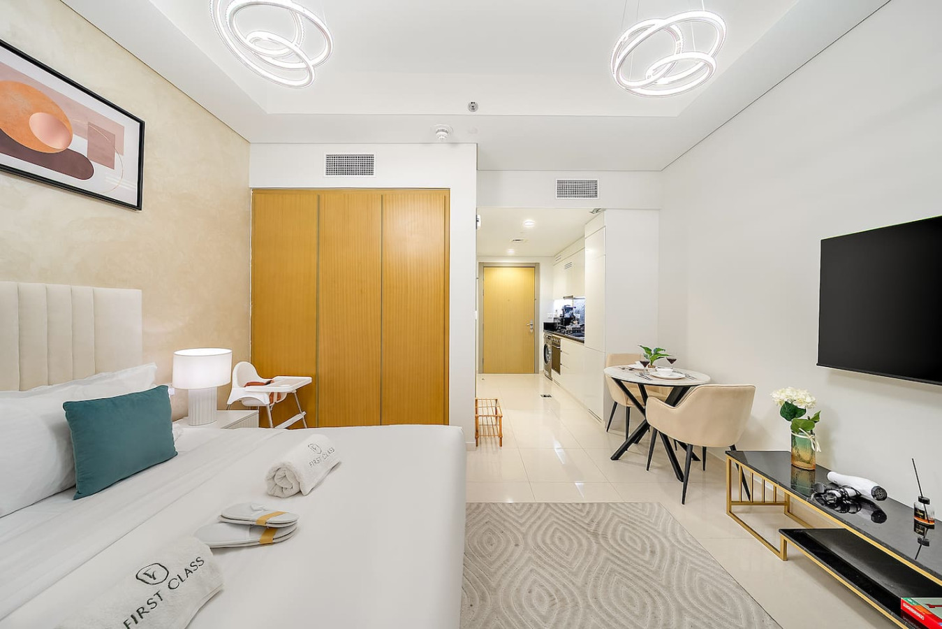 ✨ This stylish studio blends modern sophistication with cozy elegance 🌟 Overlooking the pool from your private balcony 🏊♂️, step into a thoughtfully designed space with contemporary furnishings 🛋️ and a fully equipped kitchenette 🍽️ — adding an extra touch of luxury to your stay 💫 Located steps from top attractions 🎯, it’s perfect for relaxing indoors or exploring the vibrant city surroundings 🌆