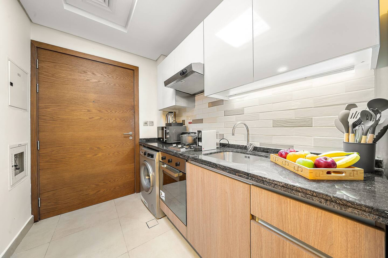 It is fully equipped with stainless-steel cooking appliances that make it suitable for preparing any meal, whether a simple breakfast, quick snack or a three-course gourmet dinner. Spacious quartz countertops and a central kitchen island provide plenty of room to work your MasterChef magic.