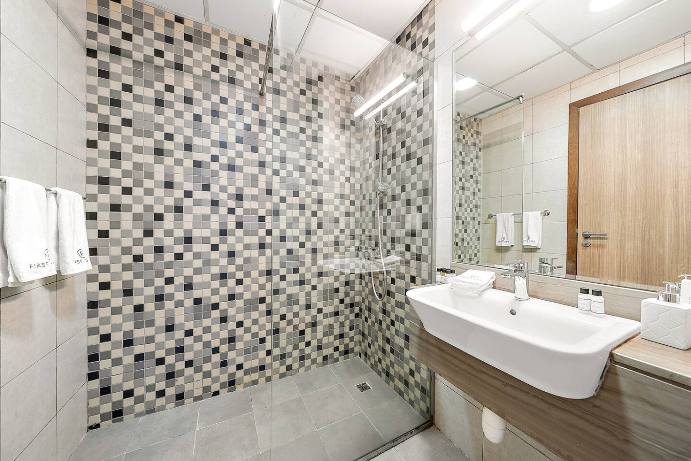 The bathroom is stocked with fresh towels and essential toiletries, so you don’t have to worry about bringing your own.