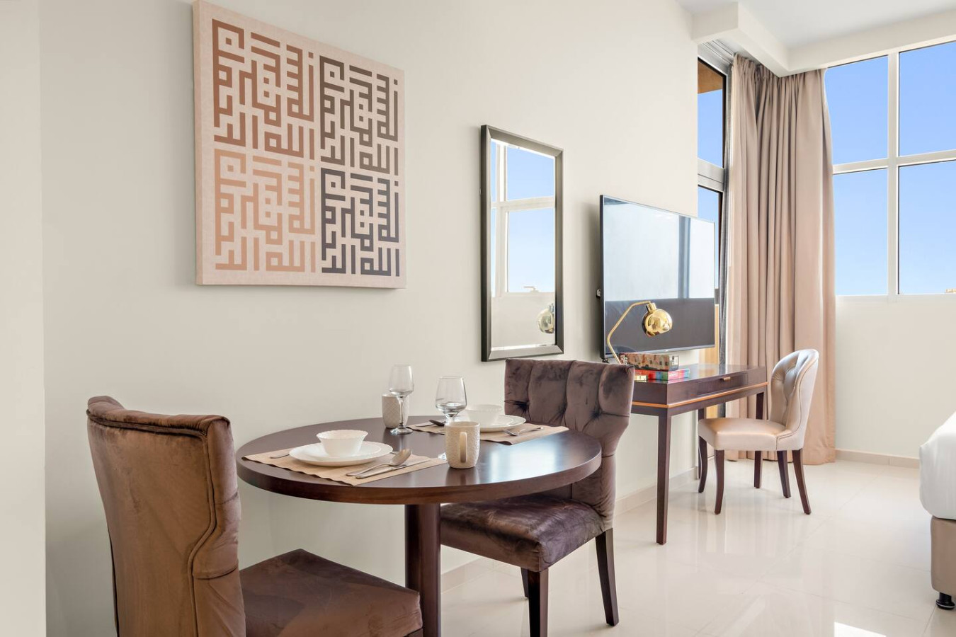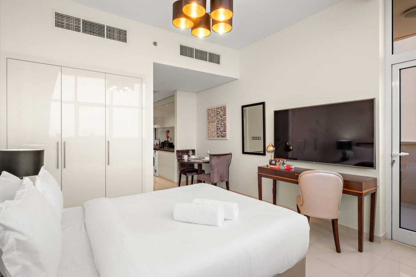 Experience comfort & style at GHALIA in JVC 🌇! This modern studio blends cozy elegance with luxury 💎. Enjoy a thoughtfully designed space with chic furnishings 🛋️, perfect for relaxation . Near Sports City 🏟️, Mall of the Emirates 🛍️ & top spots, it’s ideal for all travelers ✈️. Parks, shops & cafés nearby ☕ make your stay extra convenient. Your perfect Dubai retreat awaits 🌴✨