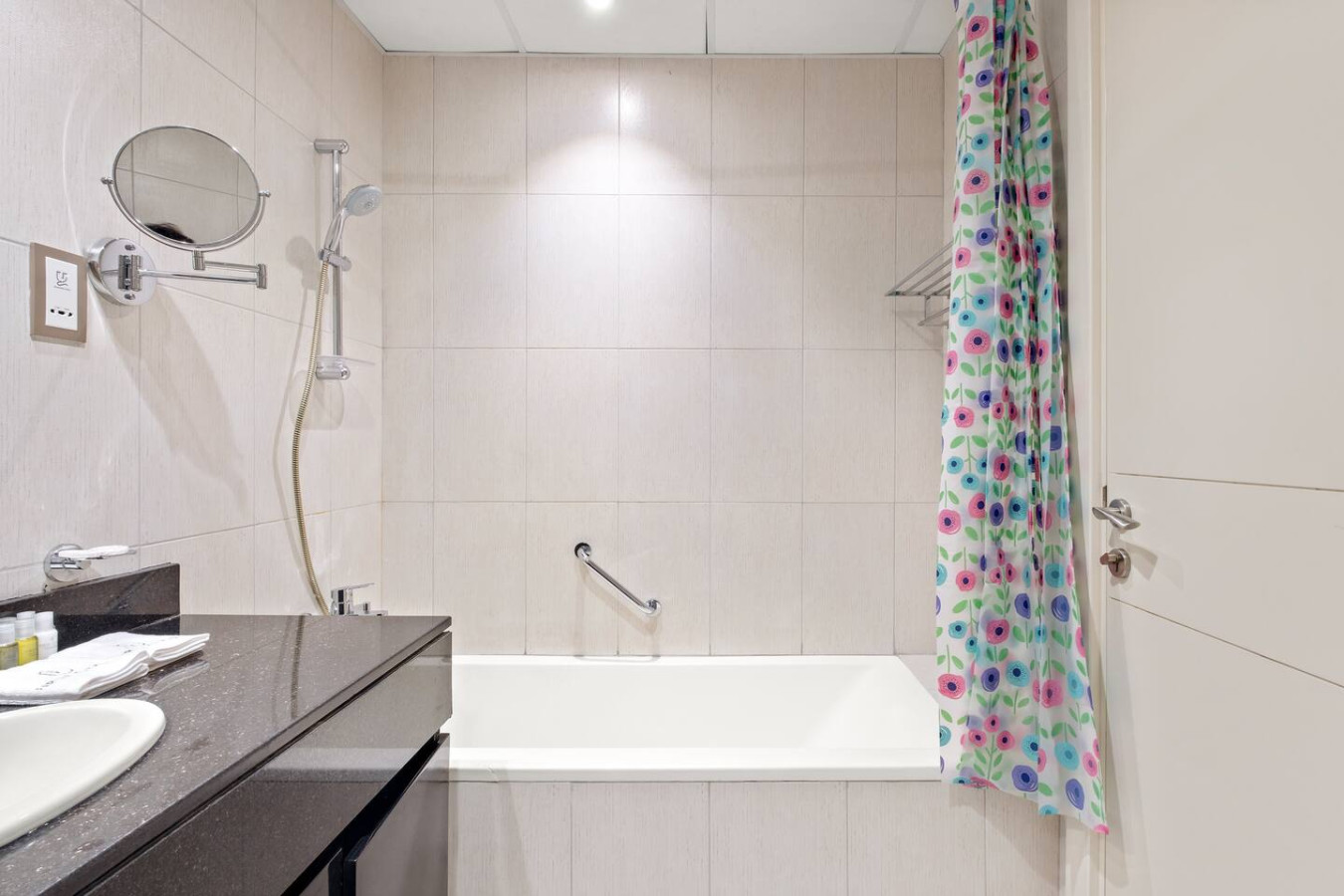 The bathroom is stocked with fresh towels and essential toiletries, so you don’t have to worry about bringing your own.