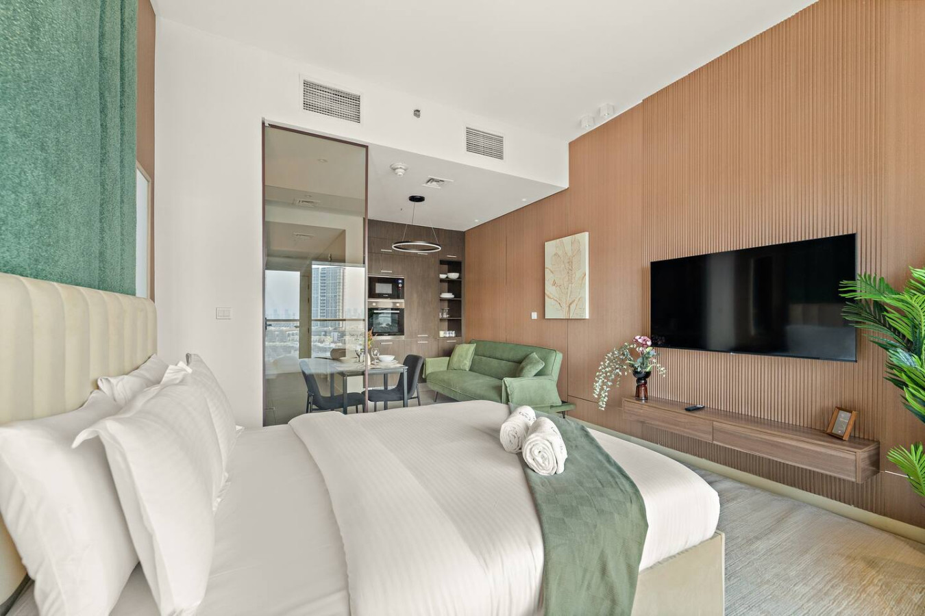 Rest in this modern, stylish studio in the heart of Park View Tower 🌆✨. Enjoy a private balcony perfect for unwinding and taking in the views 🌿☀️. Designed with quiet luxury, the space offers cozy comfort, contemporary furnishings, and all essentials for solo travelers or couples . Whether relaxing indoors or exploring the vibrant surroundings, this home provides a warm, inviting, and convenient stay for every guest.