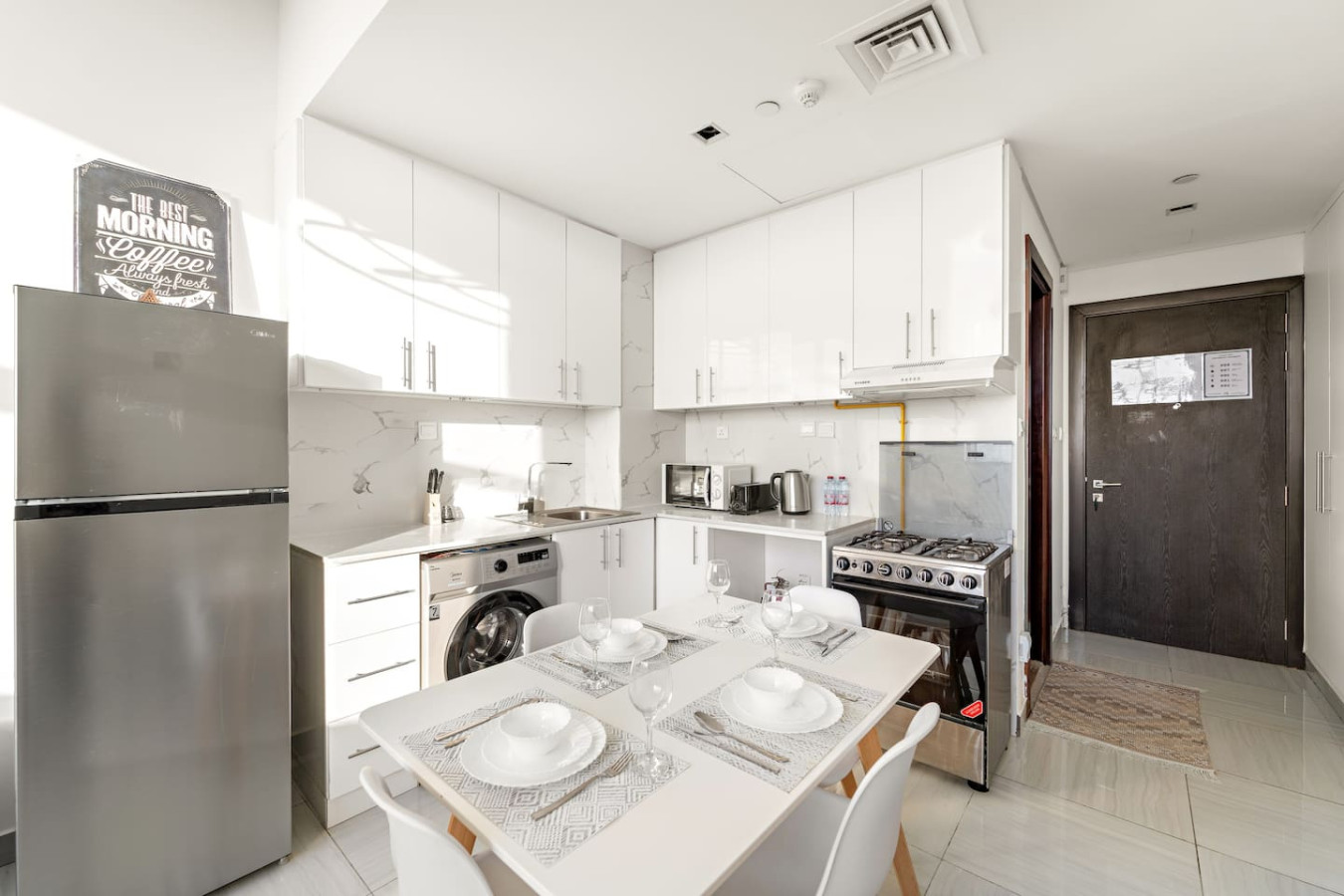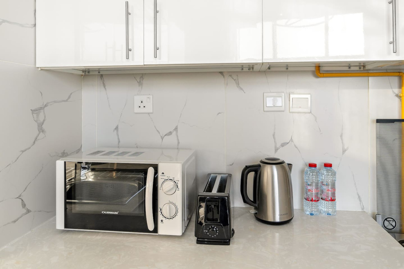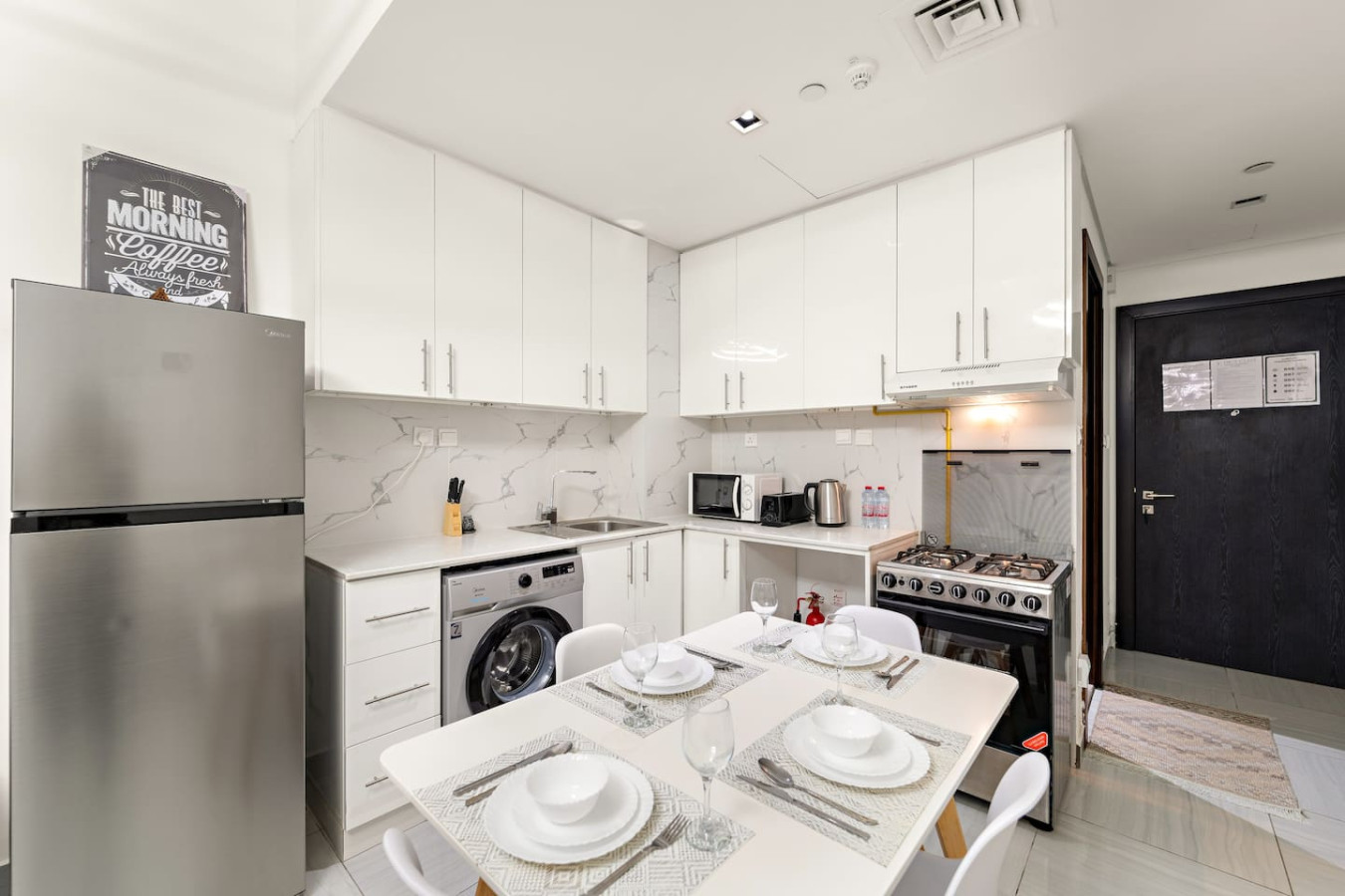 It is fully equipped with stainless-steel cooking appliances that make it suitable for preparing any meal, whether a simple breakfast, quick snack or a three-course gourmet dinner. Spacious quartz countertops and a central kitchen island provide plenty of room to work your MasterChef magic.