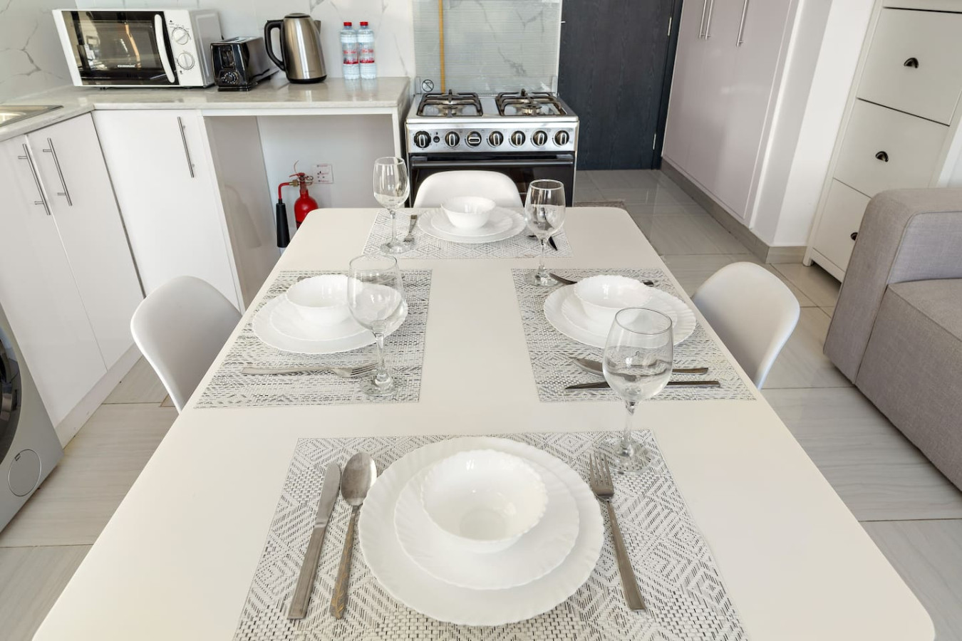 Have a few drinks in the living room while the food is getting ready. Once it’s done, serve it at the inviting dining table and enjoy a tasty meal with your loved ones.