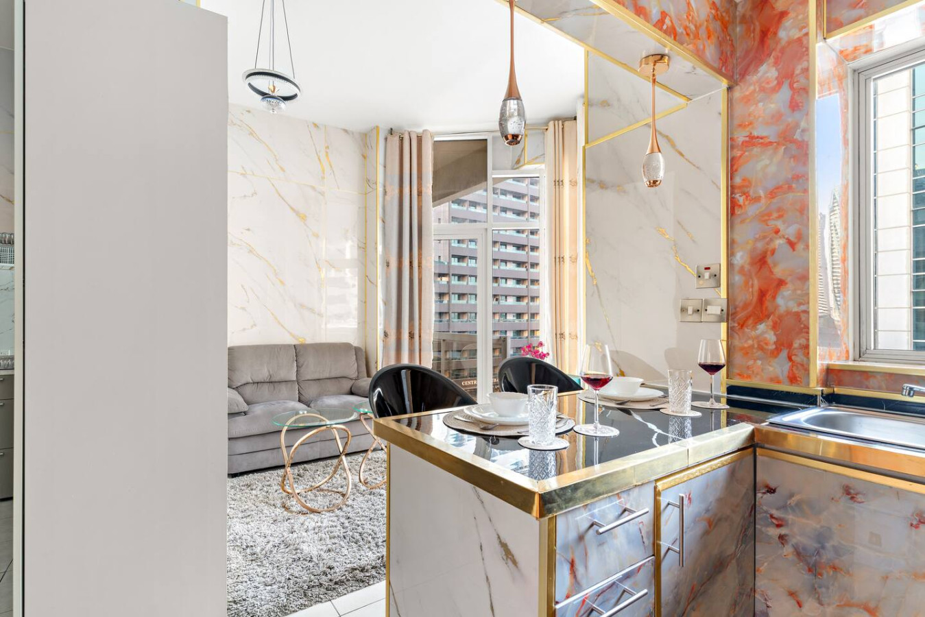 Unwind in your luxurious marble-designed studio after a day in the city.