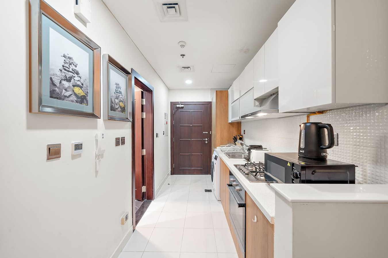 It is fully equipped with stainless-steel cooking appliances that make it suitable for preparing any meal, whether a simple breakfast, quick snack or a three-course gourmet dinner. Spacious quartz countertops and a central kitchen island provide plenty of room to work your MasterChef magic.