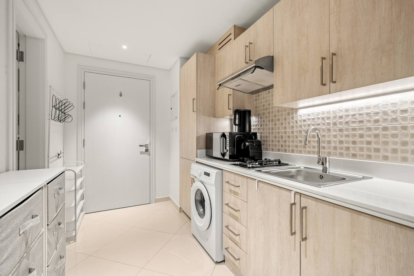 It is fully equipped with stainless-steel cooking appliances that make it suitable for preparing any meal, whether a simple breakfast, quick snack or a three-course gourmet dinner. Spacious quartz countertops and a central kitchen island provide plenty of room to work your MasterChef magic.