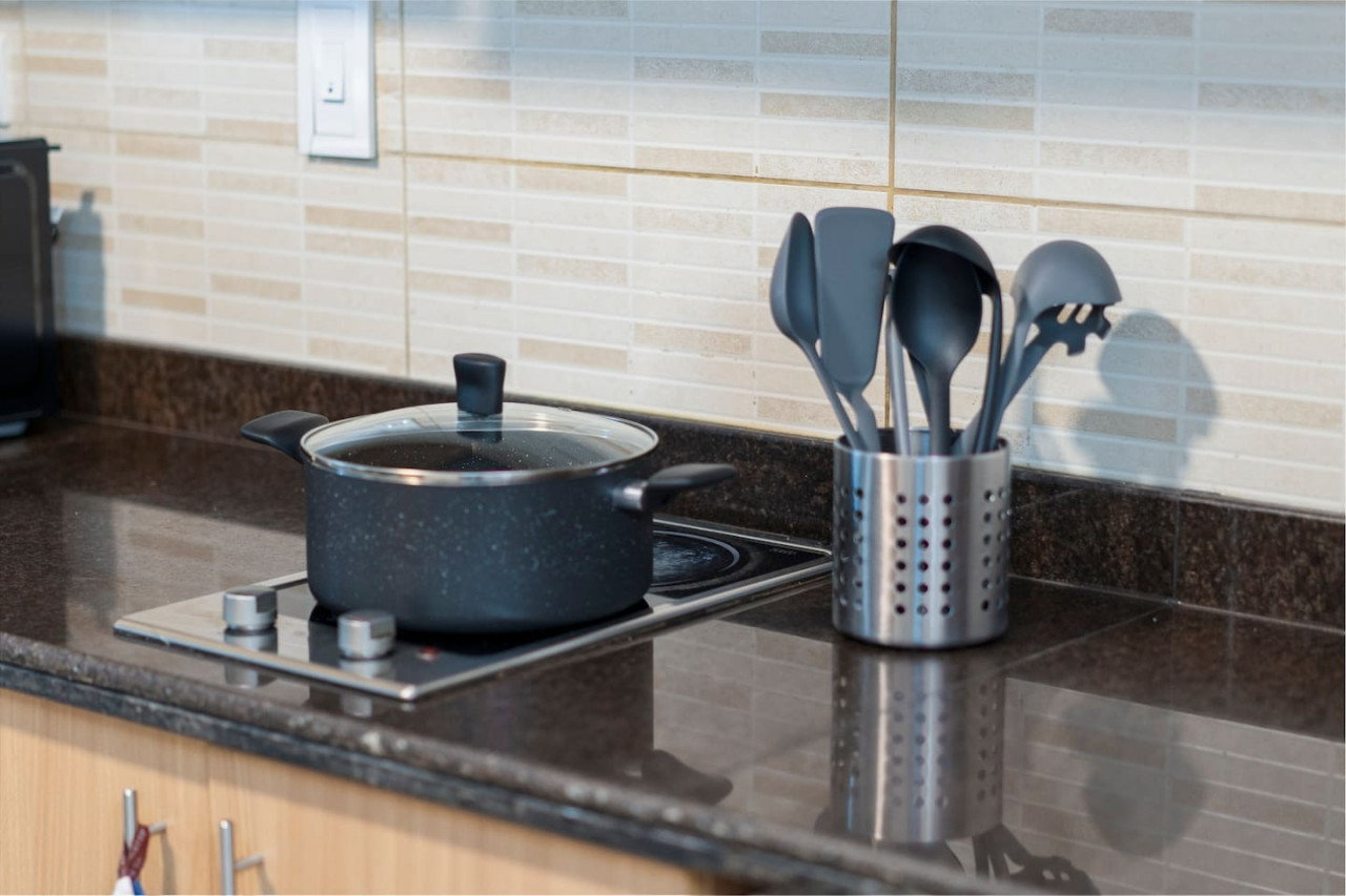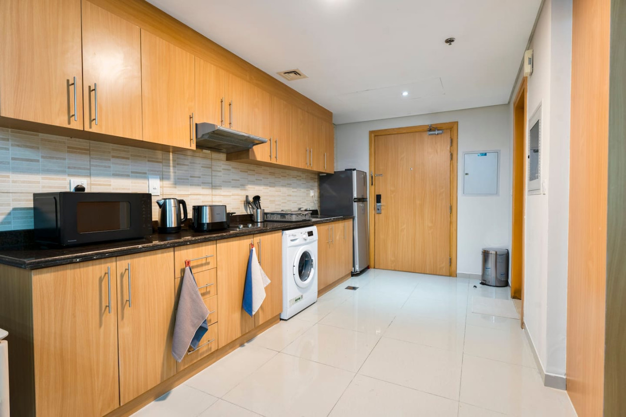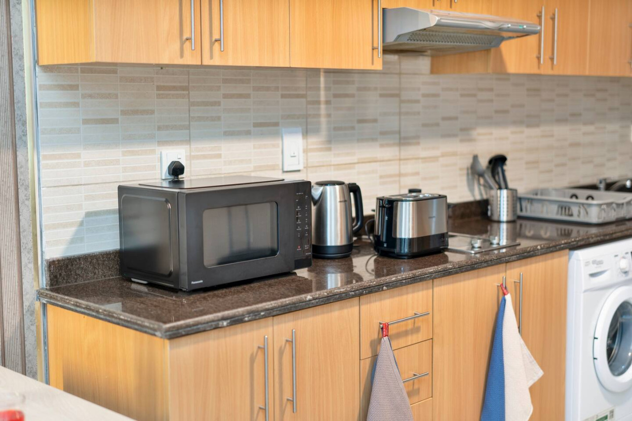 It is fully equipped with stainless-steel cooking appliances that make it suitable for preparing any meal, whether a simple breakfast, quick snack or a three-course gourmet dinner. Spacious quartz countertops and a central kitchen island provide plenty of room to work your MasterChef magic.