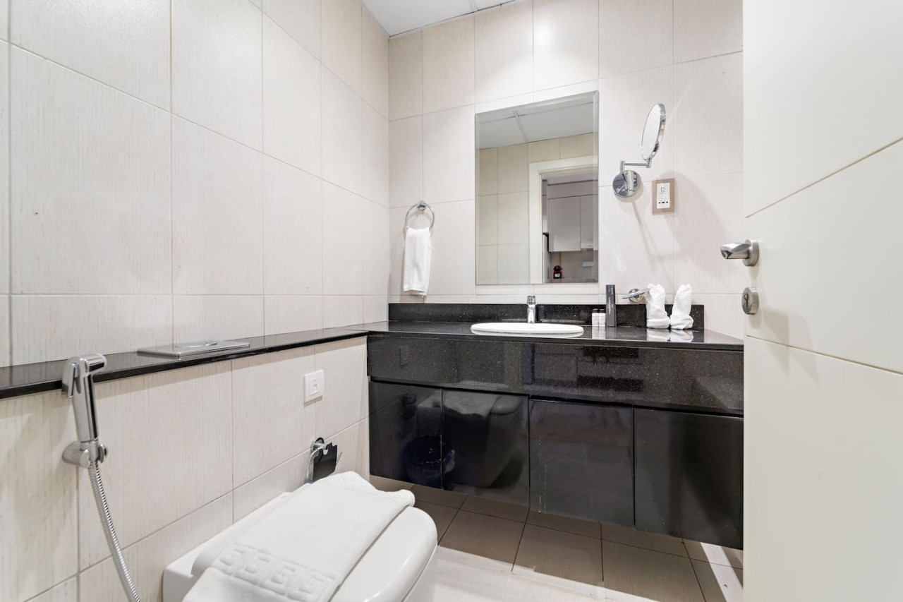 The bathroom is stocked with fresh towels and essential toiletries, so you don’t have to worry about bringing your own.