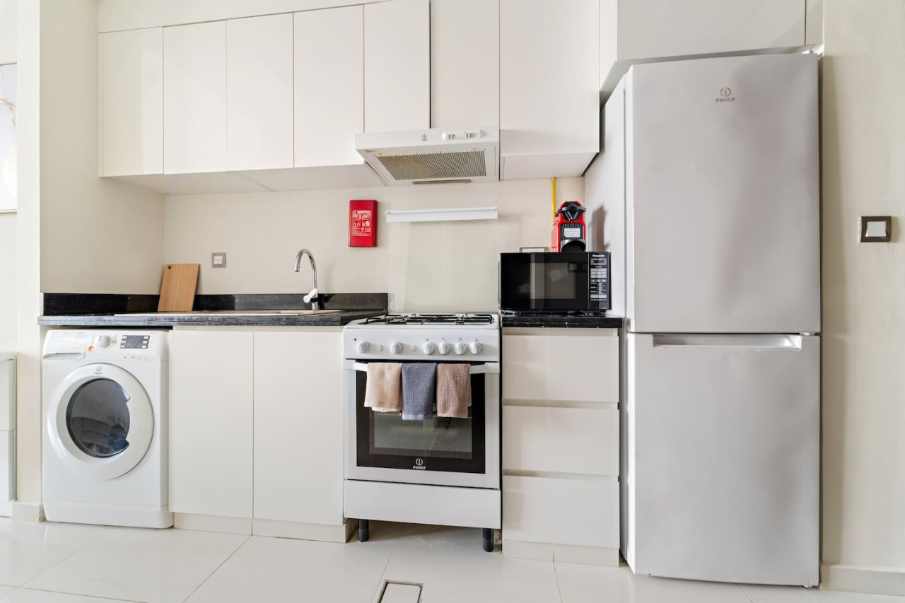 It is fully equipped with stainless-steel cooking appliances that make it suitable for preparing any meal, whether a simple breakfast, quick snack or a three-course gourmet dinner. Spacious quartz countertops and a central kitchen island provide plenty of room to work your MasterChef magic.