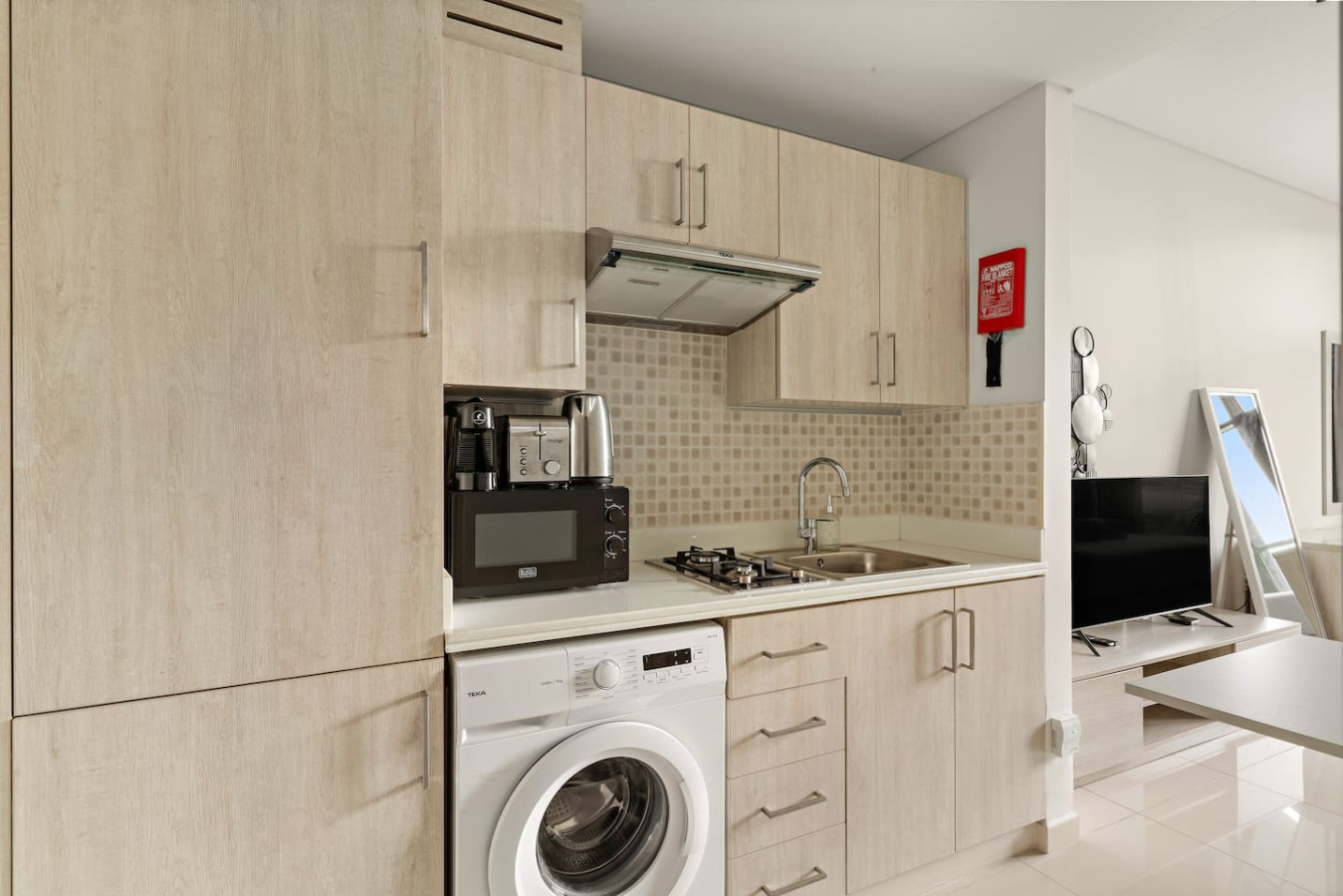 It is fully equipped with stainless-steel cooking appliances that make it suitable for preparing any meal, whether a simple breakfast, quick snack or a three-course gourmet dinner. Spacious quartz countertops and a central kitchen island provide plenty of room to work your MasterChef magic.