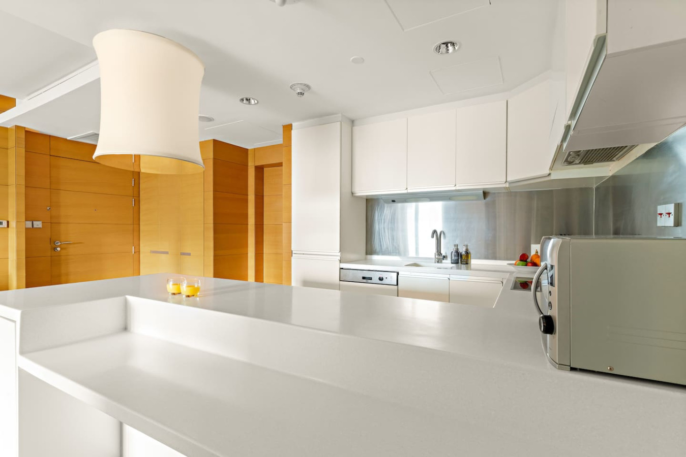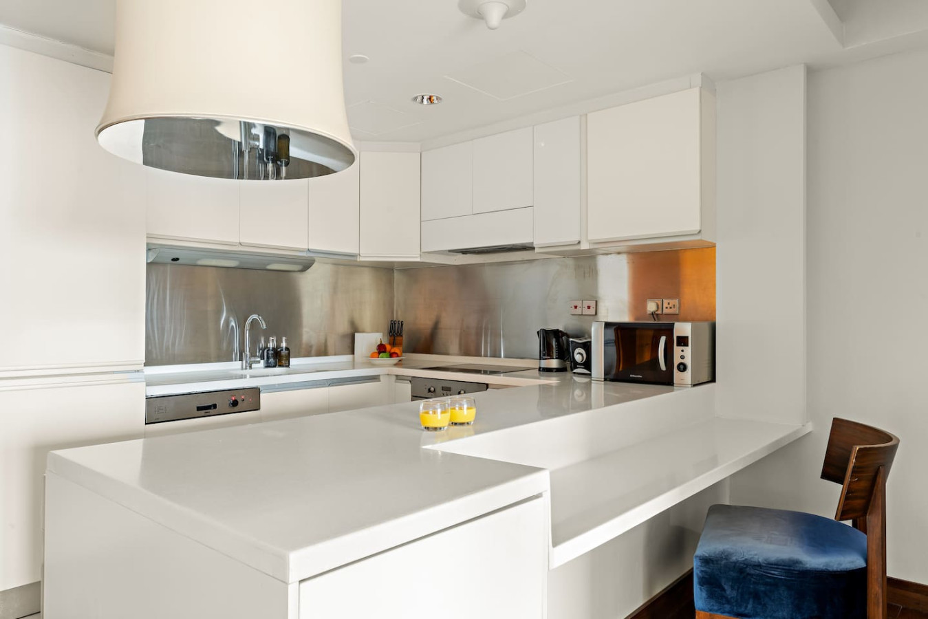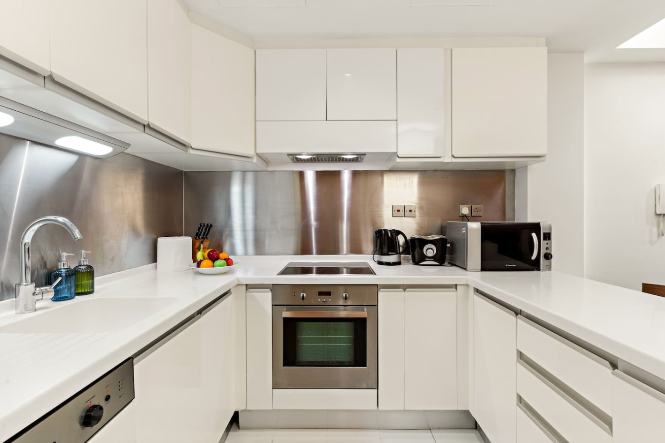 It is fully equipped with stainless-steel cooking appliances that make it suitable for preparing any meal, whether a simple breakfast, quick snack or a three-course gourmet dinner. Spacious quartz countertops and a central kitchen island provide plenty of room to work your MasterChef magic.