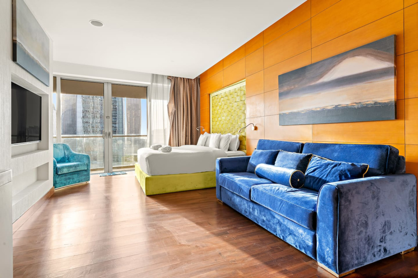 Experience the magic of Dubai from this modern, stylish apartment with stunning direct views of the iconic Burj Khalifa. Located in the heart of Downtown, you’re steps from Dubai Mall, top restaurants, and world-class entertainment. Enjoy floor-to-ceiling windows, a fully equipped kitchen, fast Wi-Fi, and luxury amenities including a pool and gym. Perfect for couples, solo travelers, or business guests seeking unforgettable views and comfort.
