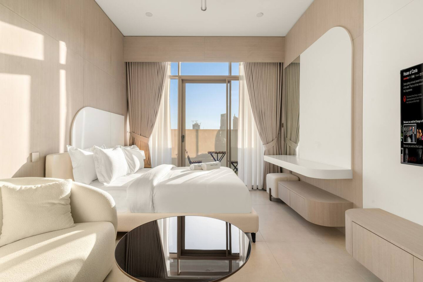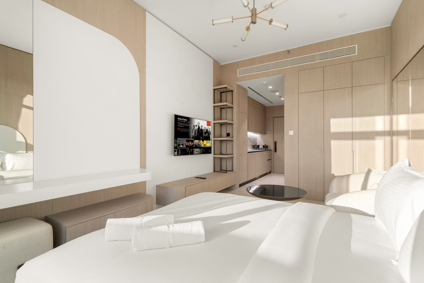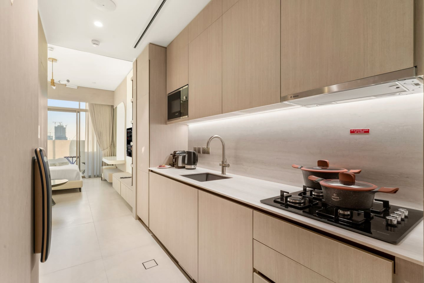 Experience modern comfort in this elegant studio tucked in a peaceful neighborhood. Perfect for couples, solo travelers, or business guests . The space features contemporary décor, cozy furnishings, and refined finishes for a relaxing stay. Enjoy easy access to public transport, dining, and key city attractions. After a busy day, unwind in a warm, stylish space designed for comfort, convenience, and memorable Dubai stays.