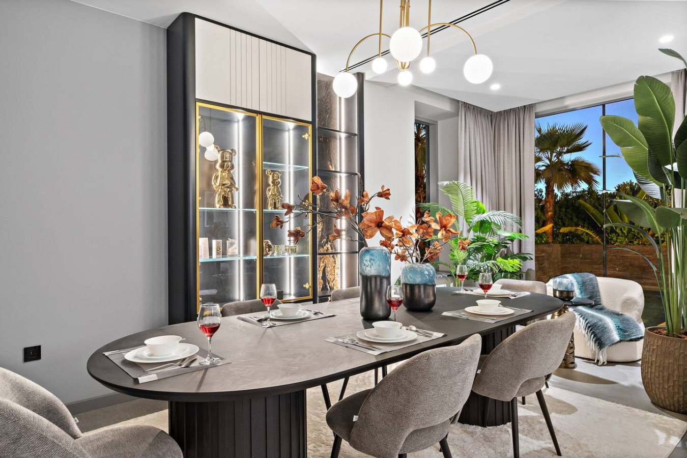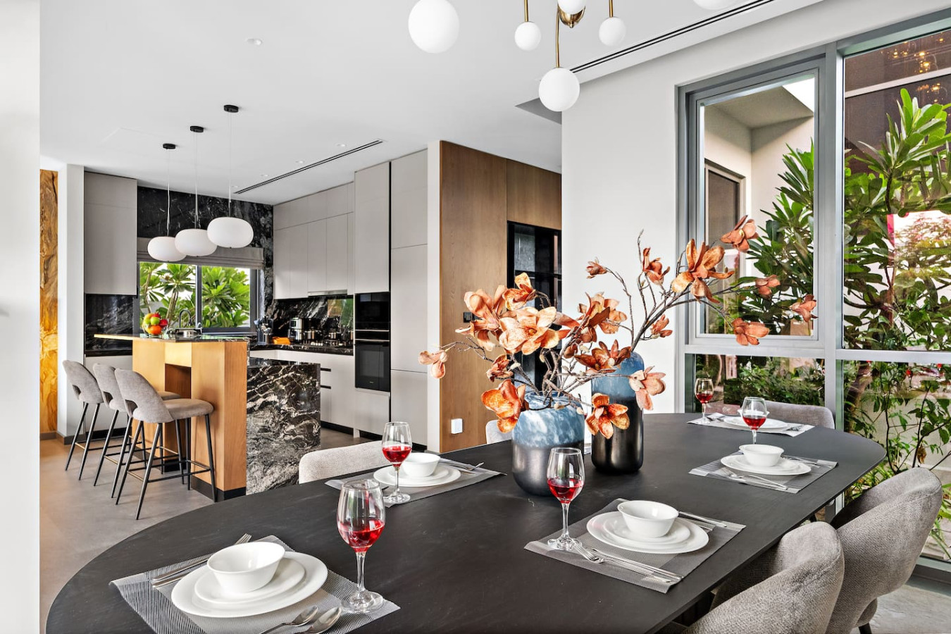 Have a few drinks in the living room while the food is getting ready. Once it’s done, serve it at the inviting dining table and enjoy a tasty meal with your loved ones.