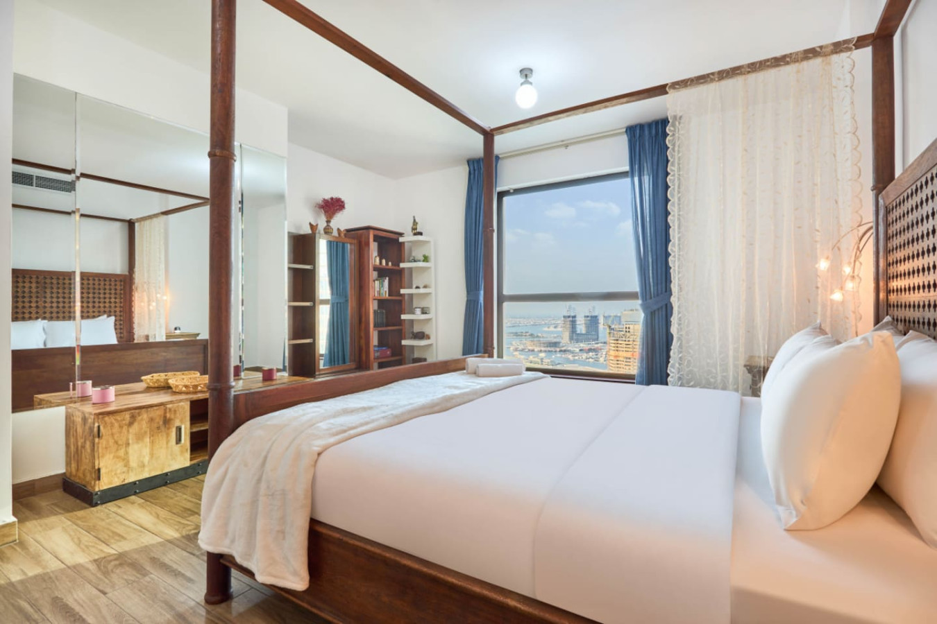 Bedrooms: Three well-appointed bedrooms with premium linens, ample storage, and large windows for natural light. Master room includes an en-suite bathroom.