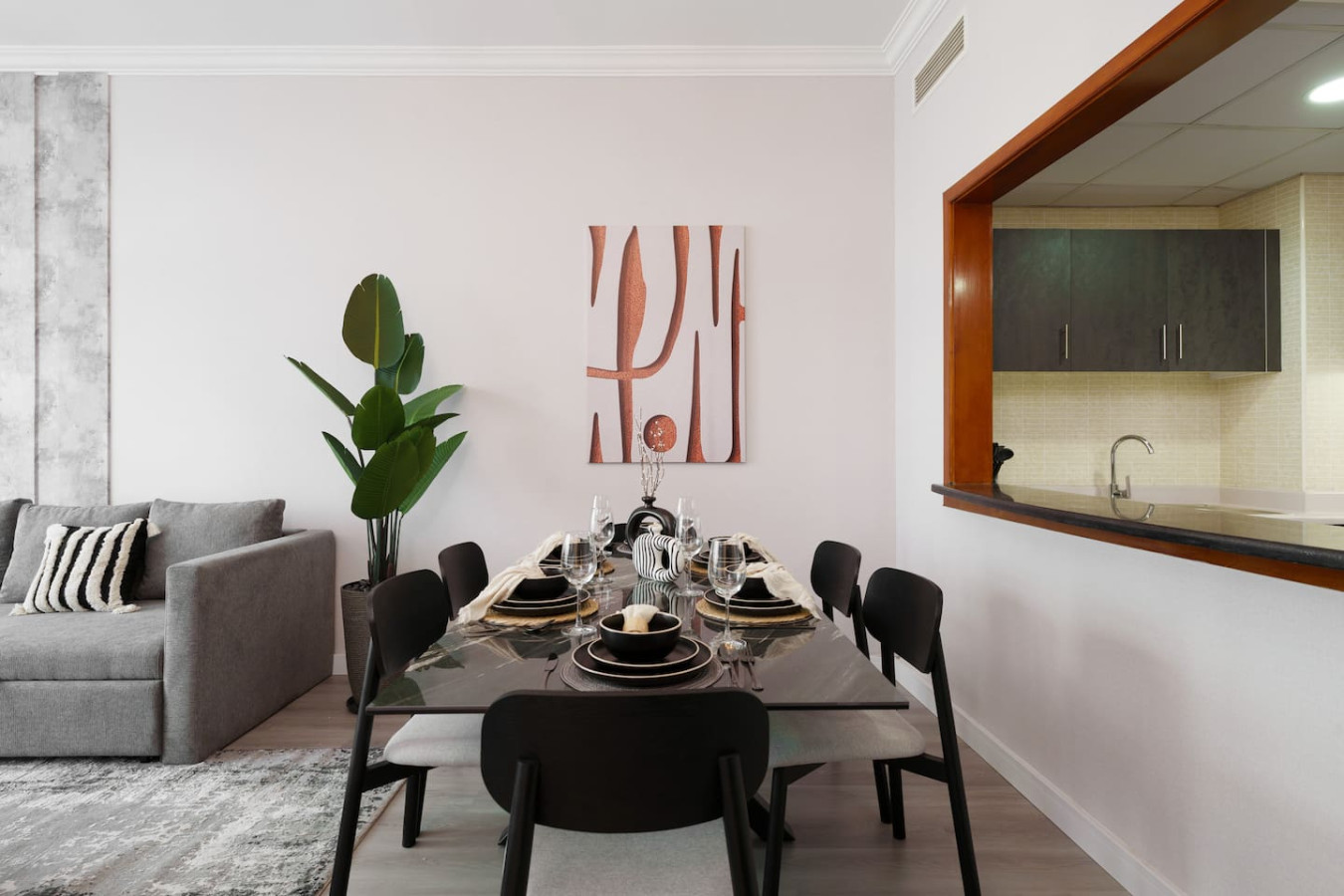 This apartment offers the ideal blend of luxury, comfort, and a strategic location, ensuring an unforgettable experience. Every detail has been thoughtfully curated to make you feel right at home and help you make the most of your time in Dubai.