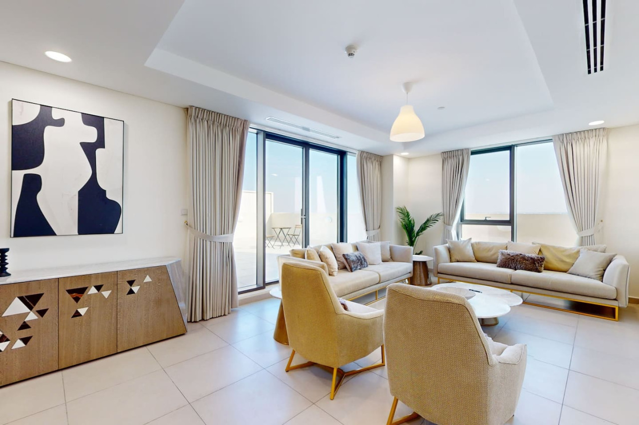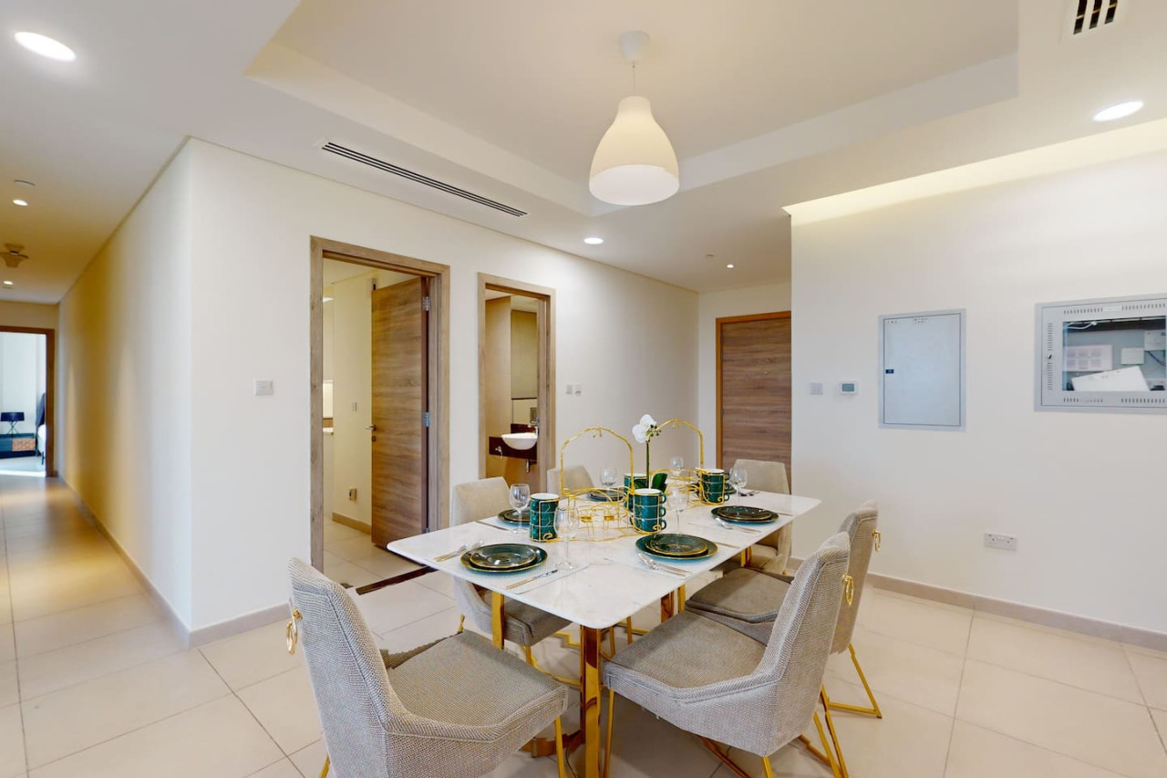 We are proud to present this elegant Three bedroom apartment in the up-and-coming neighborhood of Mirdif Hills. The community has been designed to suit the urban lifestyle of most Dubai residents while the serenity and tranquility provide a much-needed respite from the fast-paced life in Dubai. Guests are only a short car ride away from the Etihad mall nearby, or can travel a bit further to explore other exciting areas like Downtown Dubai with its iconic attractions.