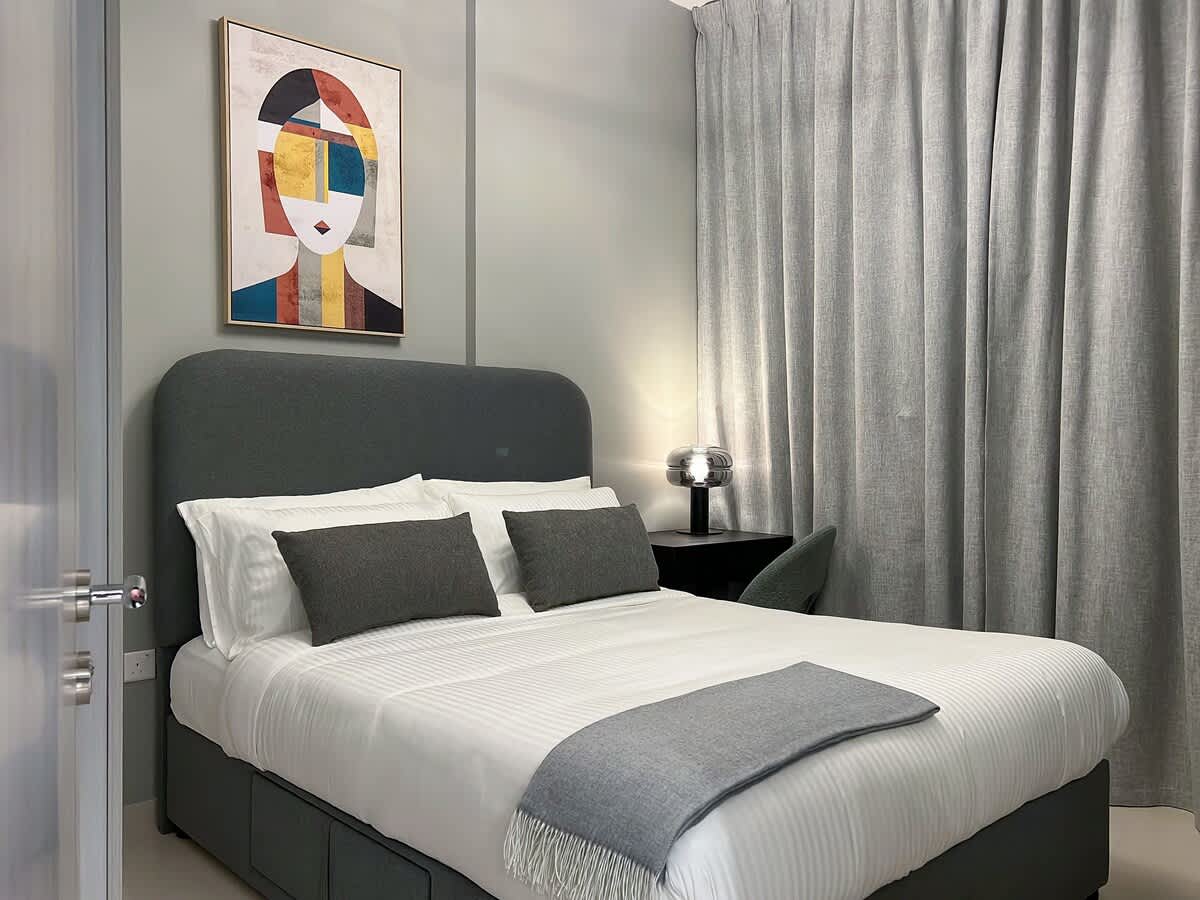 Start your day with stunning skyline views from the 20th floor, right in the heart of Business Bay. Feel the calm of the lake below as you sip your morning coffee. After a day in Dubai’s vibrant energy, sink into a plush king bed and unwind. Whether you’re here to explore or just escape, this space is your private slice of luxury.