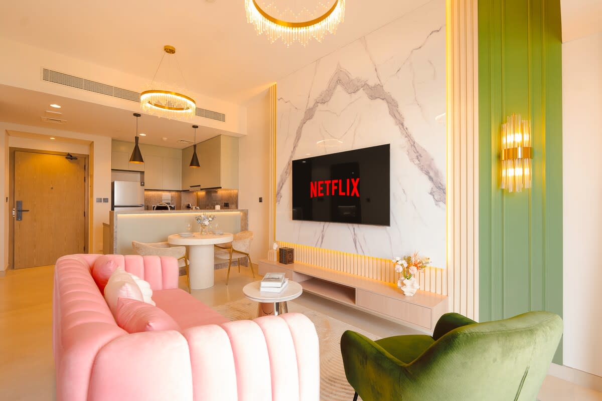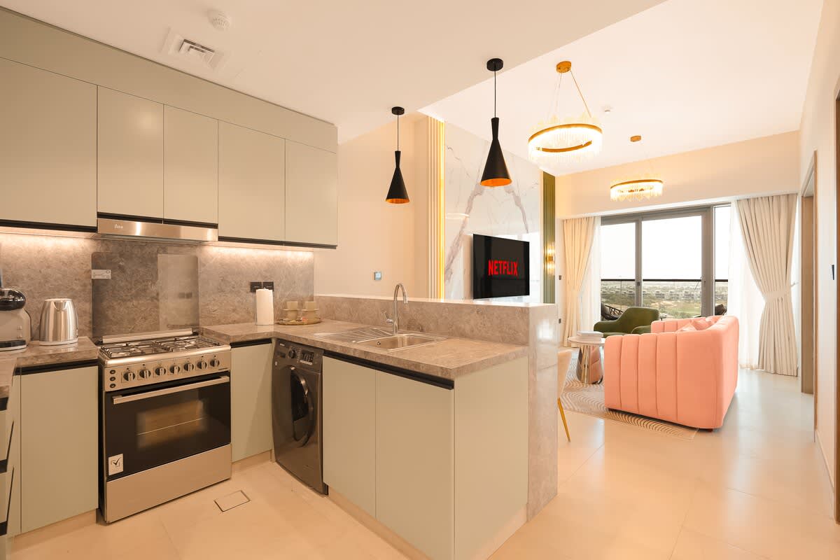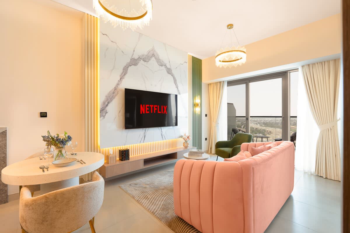 Step inside KeyRock Living at Golf Gate and feel the calm of your own private hideaway in Damac Hills. Sleep deeply, wake up refreshed, and unwind on your private balcony. Take a swim, relax in the sauna, or stay fit in the gym—your time here is all yours. Fast WiFi, smart comfort, and free parking keep it easy. Escape the ordinary—make your Dubai stay feel exclusive, relaxing, and made just for you.