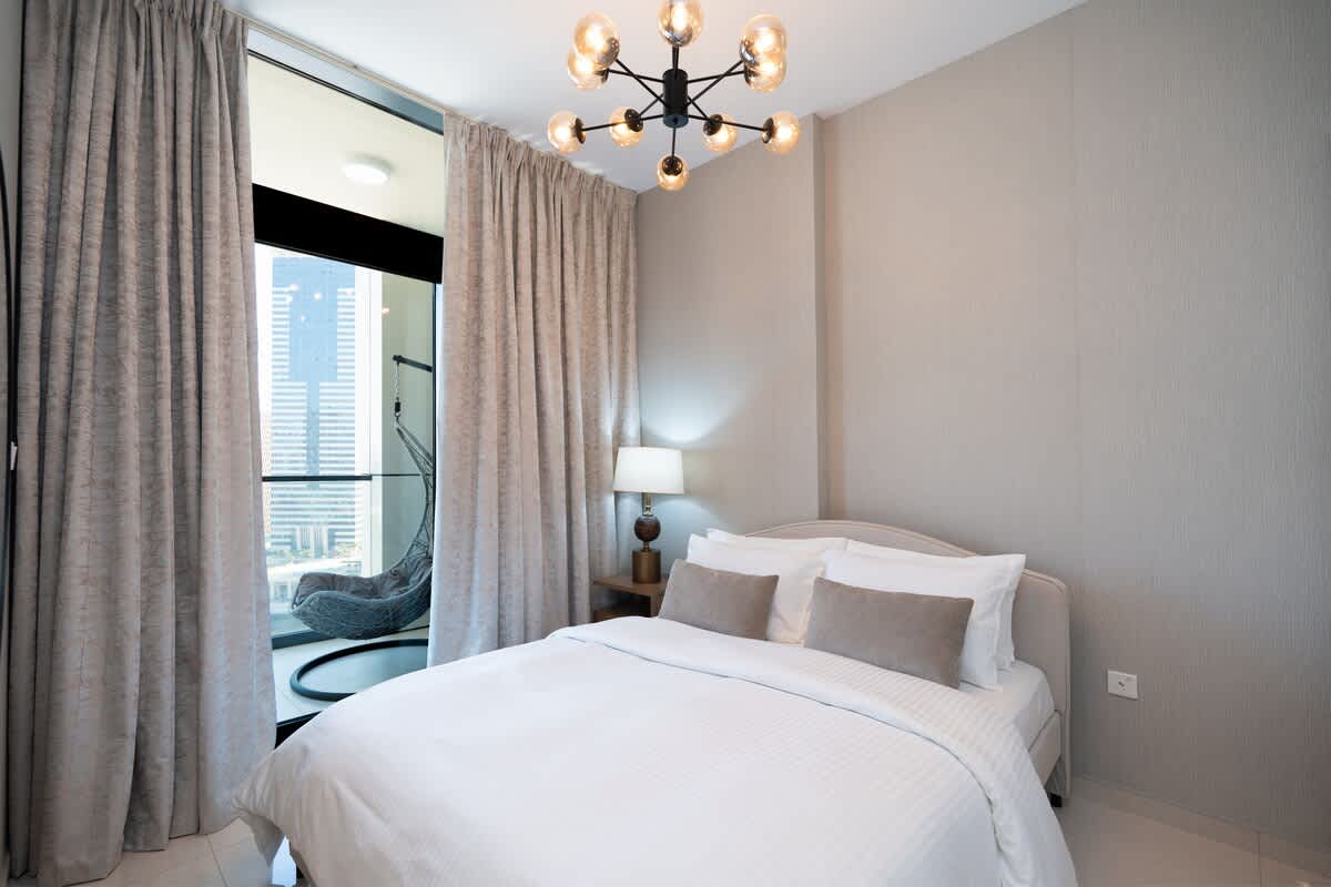 Wake up to breathtaking lake views and experience the perfect blend of elegance and comfort in this exclusive 1-bedroom retreat by Keyrock Living. Ideal for couples or business travelers, this serene haven invites you to relax on the private balcony, rejuvenate by the pool, or stay energized in the gym. With Dubai’s top attractions just moments away, your stay will feel effortless and luxurious. More than just accommodation, it’s your escape. Book now and make it unforgettable!
