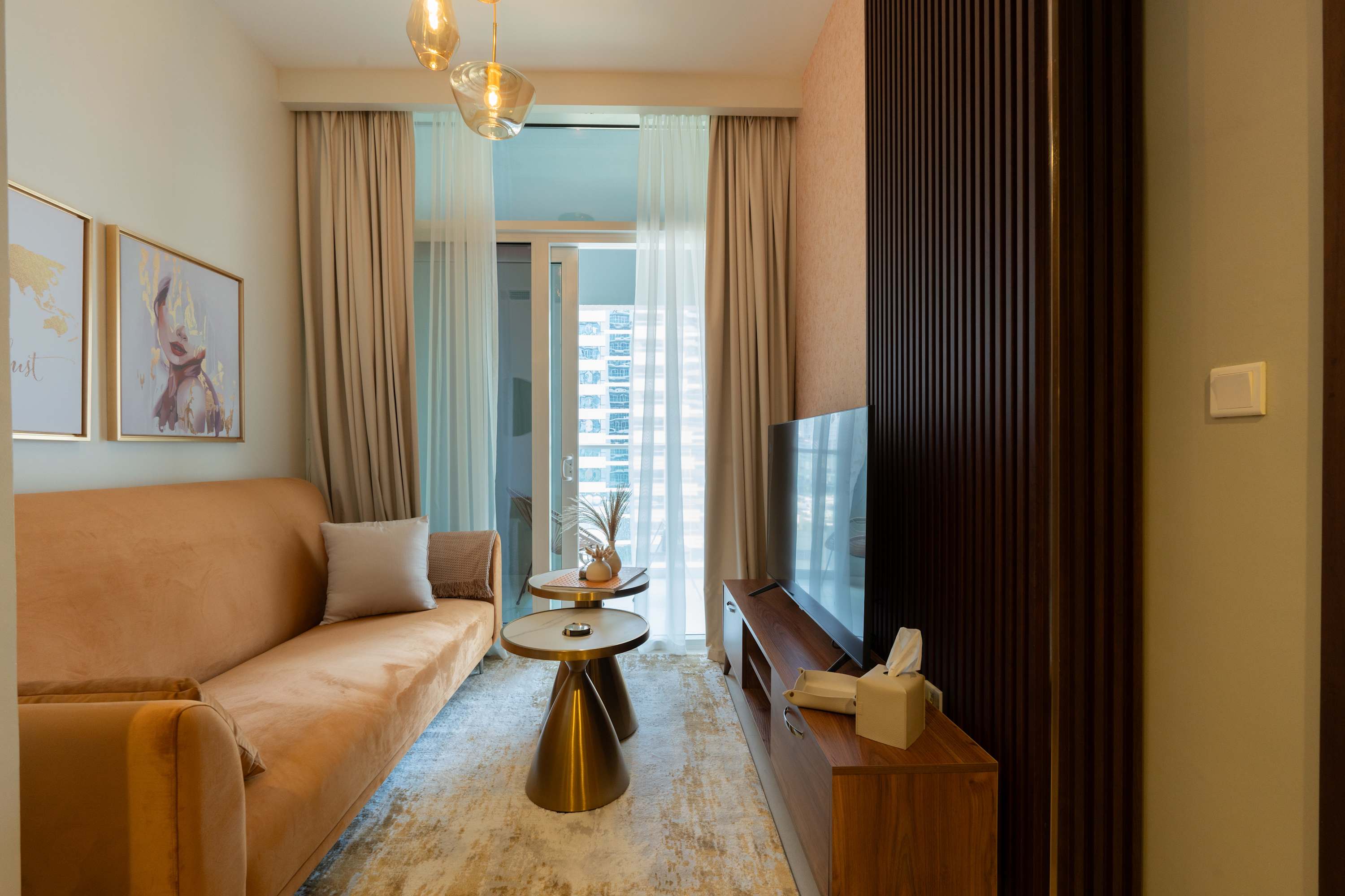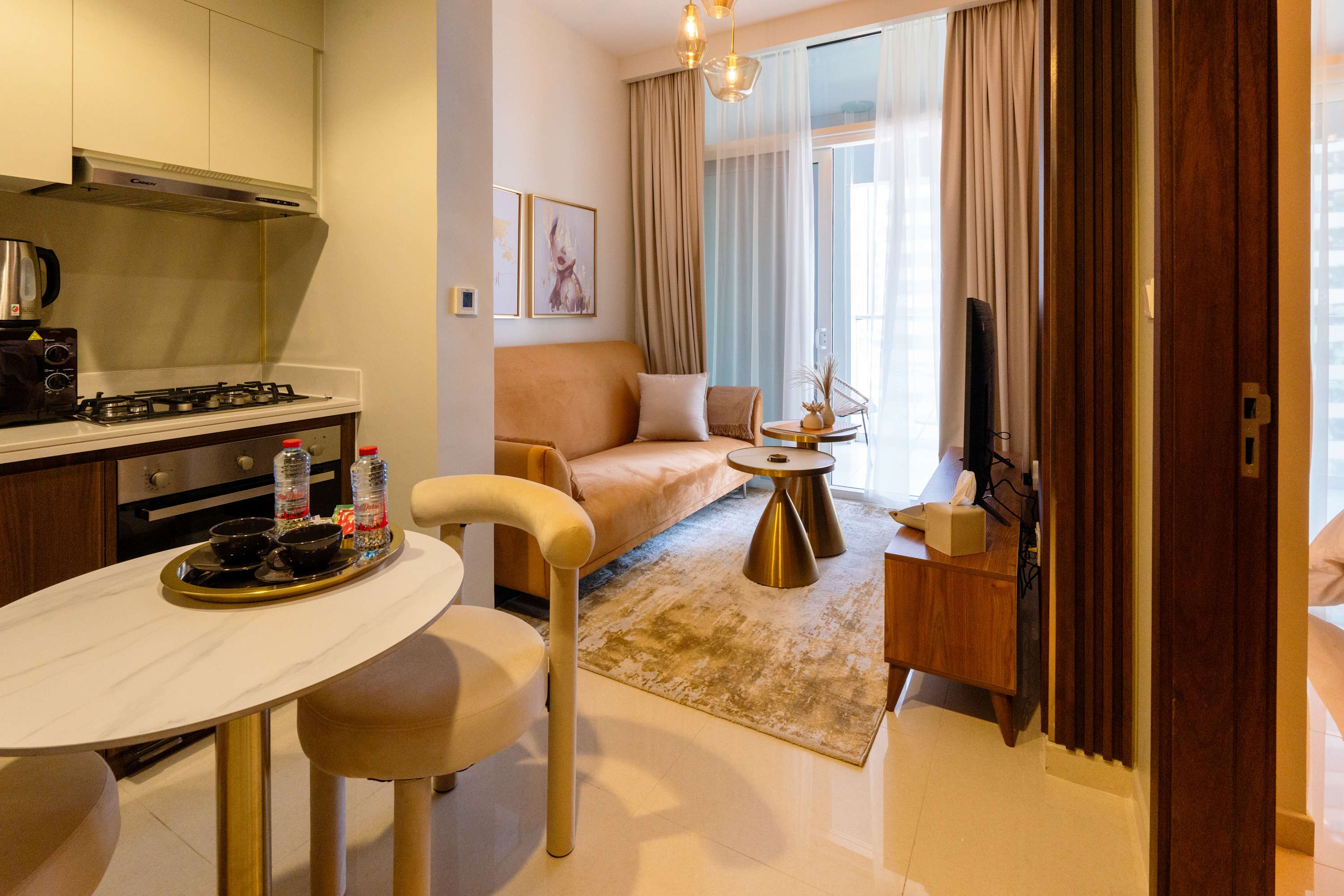 Enjoy iconic Burj Khalifa views from this elegant 1BR at Reva Residences in Business Bay. Start your day on the private balcony overlooking the skyline, then relax in tastefully curated interiors designed for comfort. Guests have access to a modern pool and gym, with Dubai Mall and Downtown just minutes away. Perfectly suited for business travelers and leisure guests seeking a refined city stay.