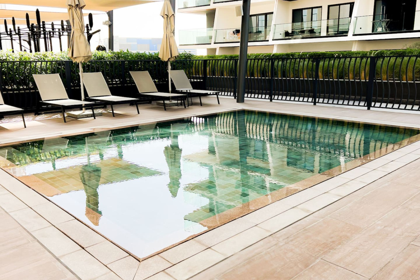 Infinity pool, offering a serene oasis amidst the bustling cityscape, where you can relax and unwind in style.